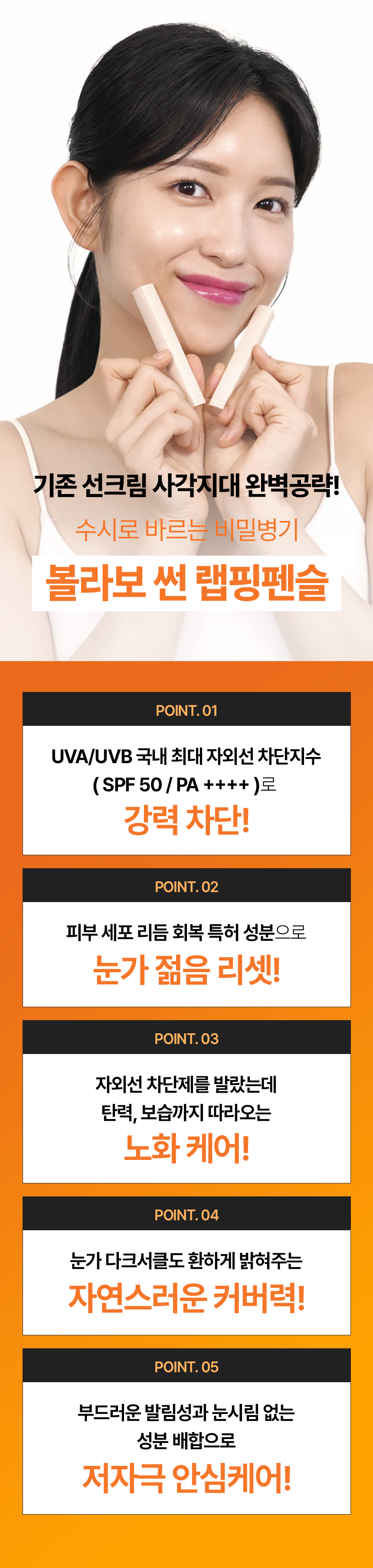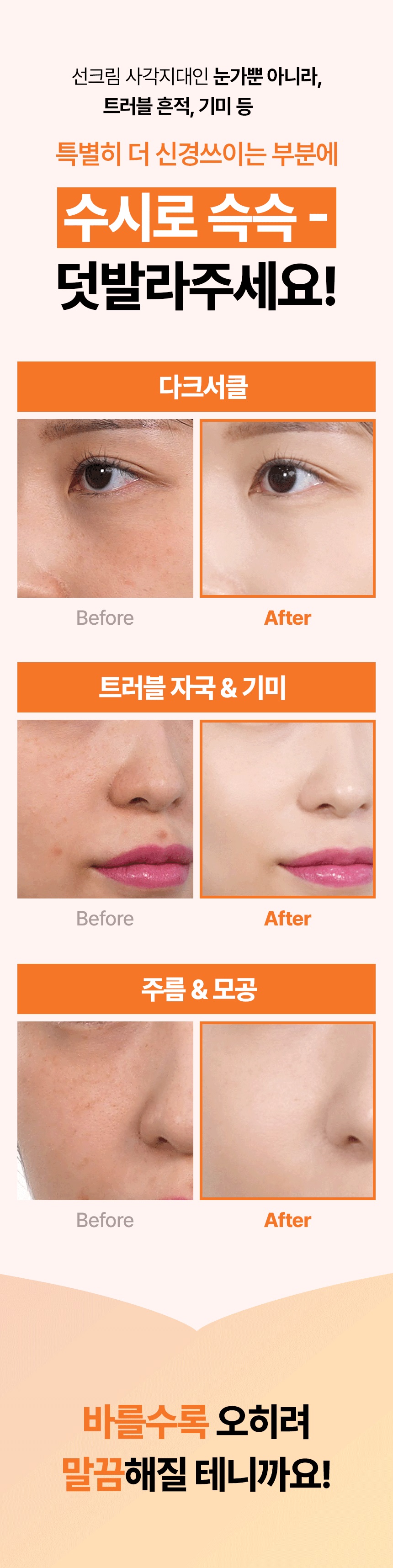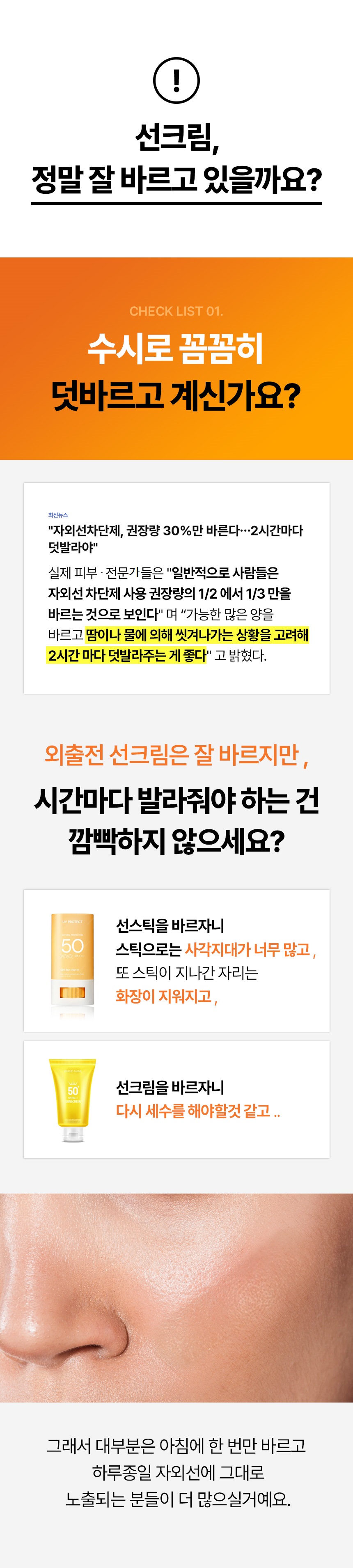 특히 선크림을 바를때 보통 깜빡하게되는 사각부위인 눈가에는 꼭 발라주세요 !