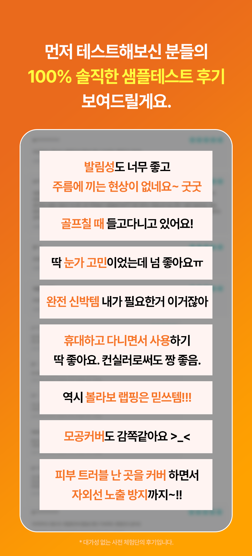 A. 여러번의 테스트를 통해 눈시림 없이 순하게 완성되었답니다.