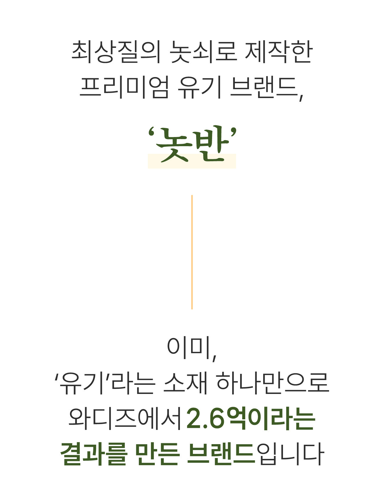 놋반은 브랜드k 선정, 중소벤처기업부 장관상 수상, 아시아로하스 인증, 뿌리기업 선정 등 국가로부터 인증받은 대한민국 대표 유기브랜드입니다.