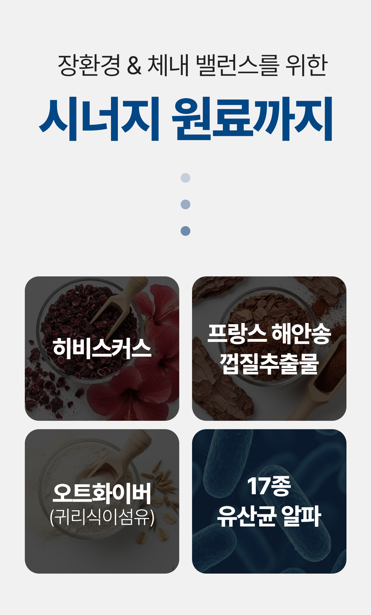 히비스커스, 귀리 식이섬유, 17종 유산균 알파 등은