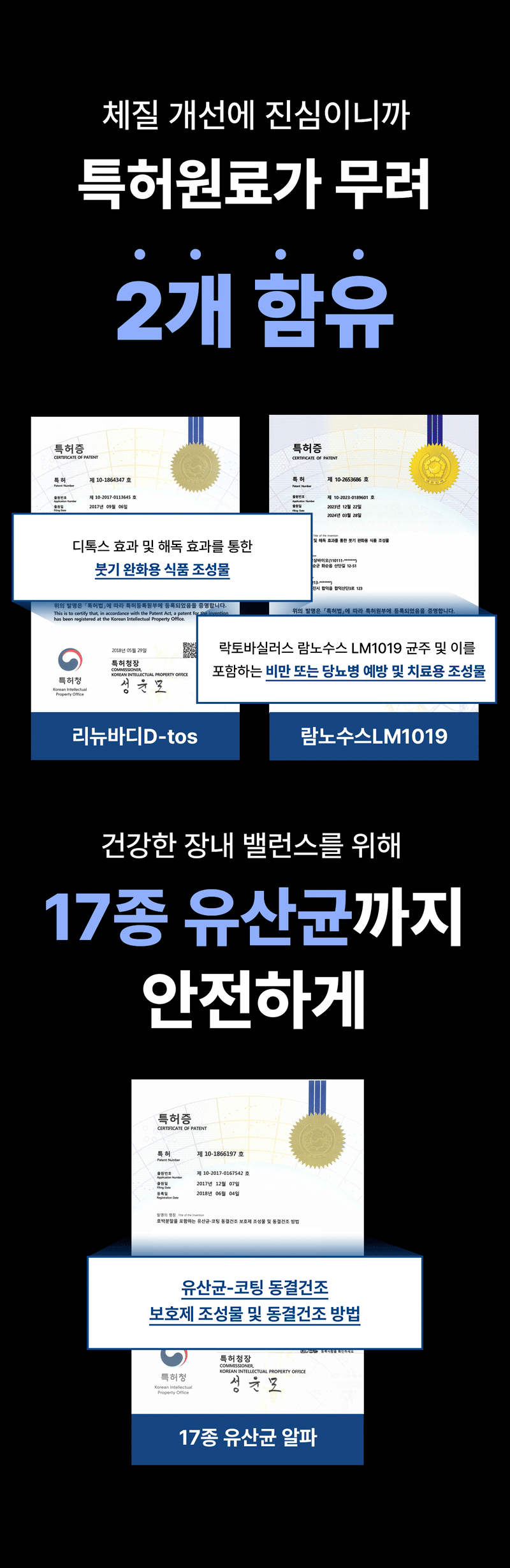 - 특허 공법 : 17종 유산균 알파