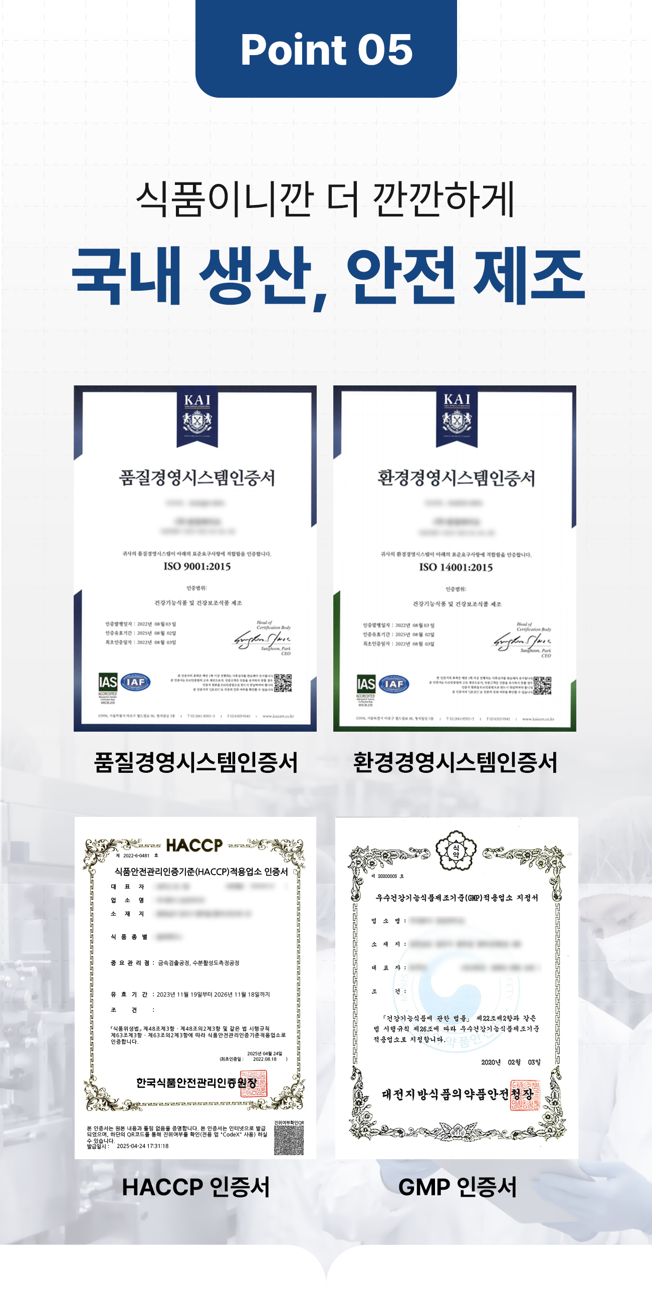 HACCP 인증 · GMP 인증 제조사에서