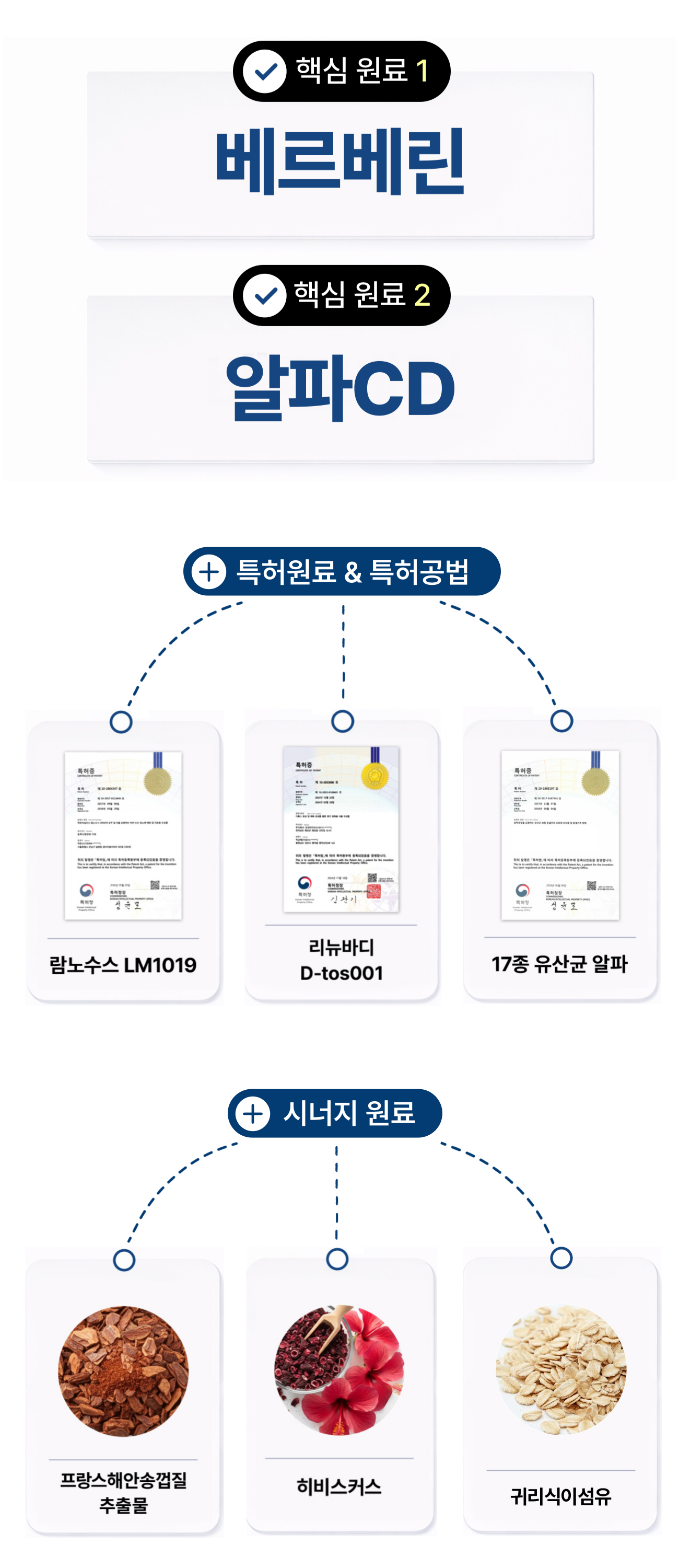 - 특허 원료 : 리뉴바디 D-tos, 람노수스 LM1019