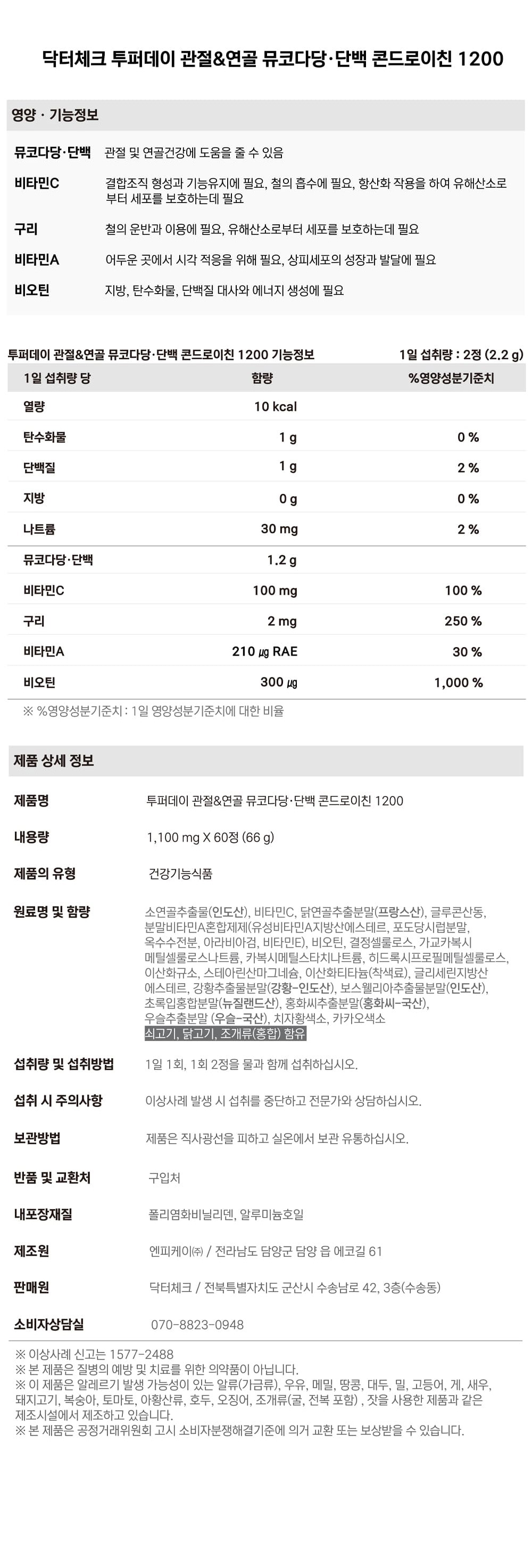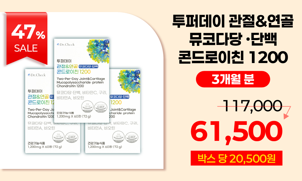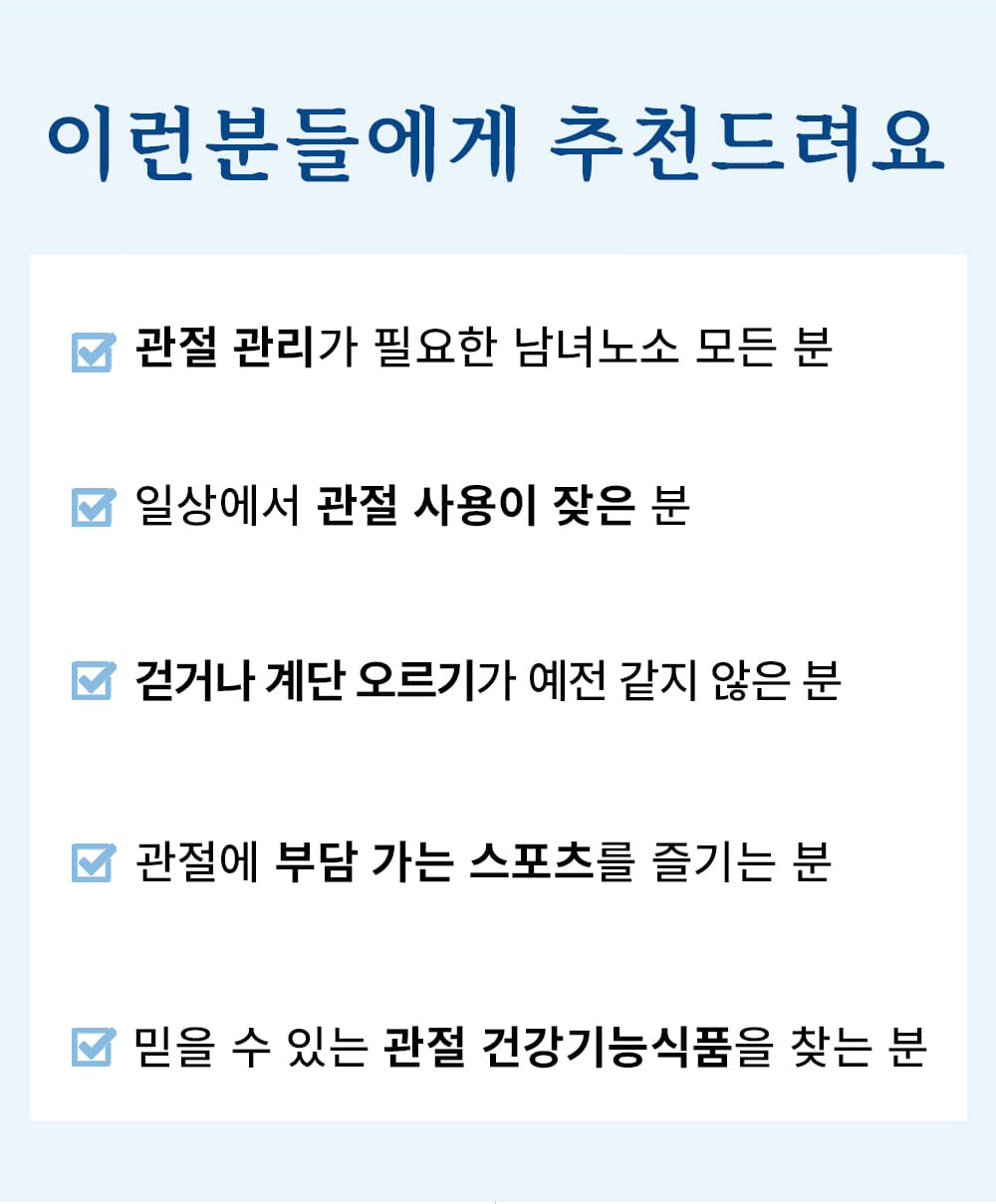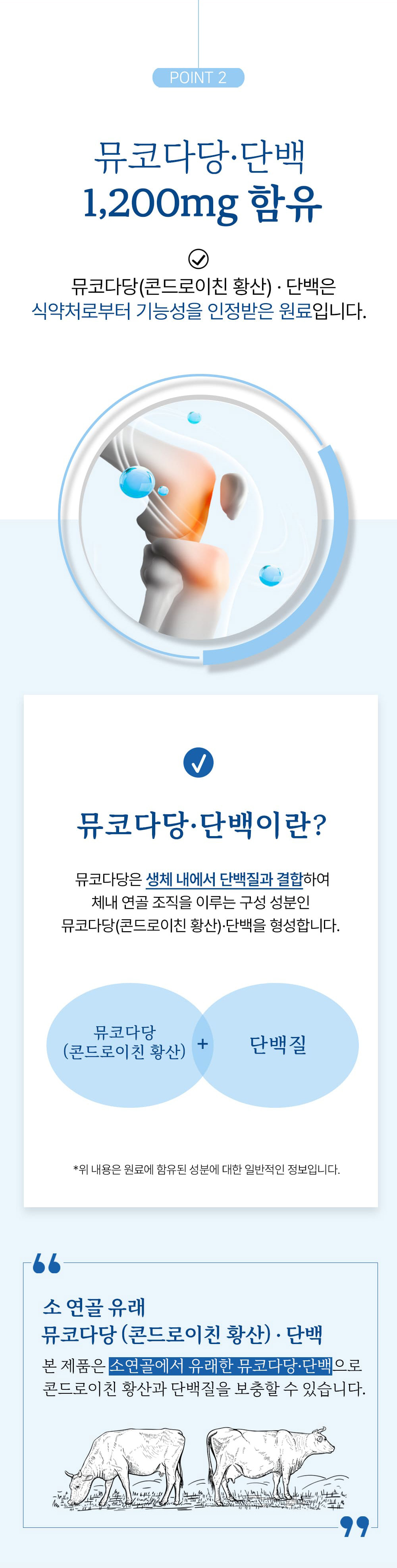 뮤코다당·단백의 응집: 소 연골은 연골 형성에 필요한 성분들이 더 밀도 있게 구성되어 있어, 활동량이 많은 분들에게 더 효율적인 영양 공급원이 될 수 있습니다.