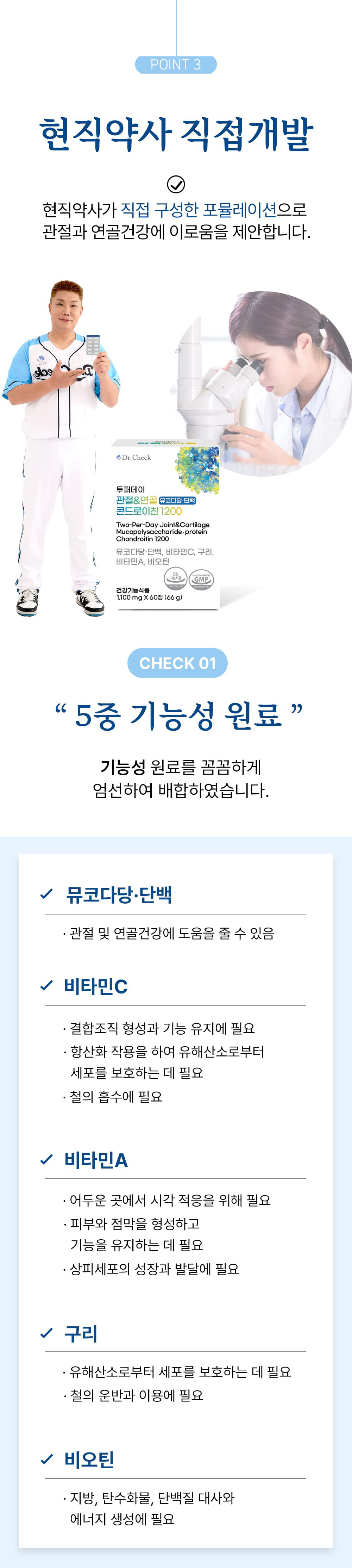 브랜드 이름이 '닥터체크'인 만큼 현직 전문가들과 엄선된 프리미엄 원료와 수많은 검증과 연구를 거듭하여 건강에 도움이 될 수 있는 제품으로 보답하고자 항상 최선을 다하고 있습니다.