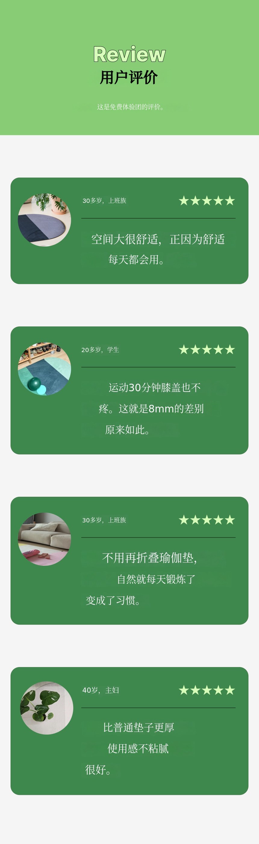 但并非专门用于隔绝楼层噪音,请避免跳跃等高强度运动。该产品最适合拉伸、瑜伽、普拉提等静态运动。