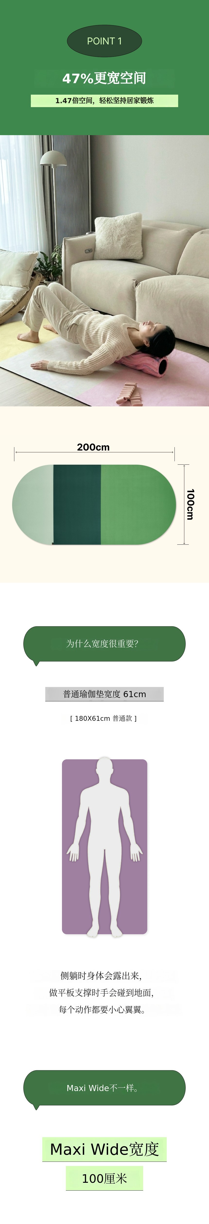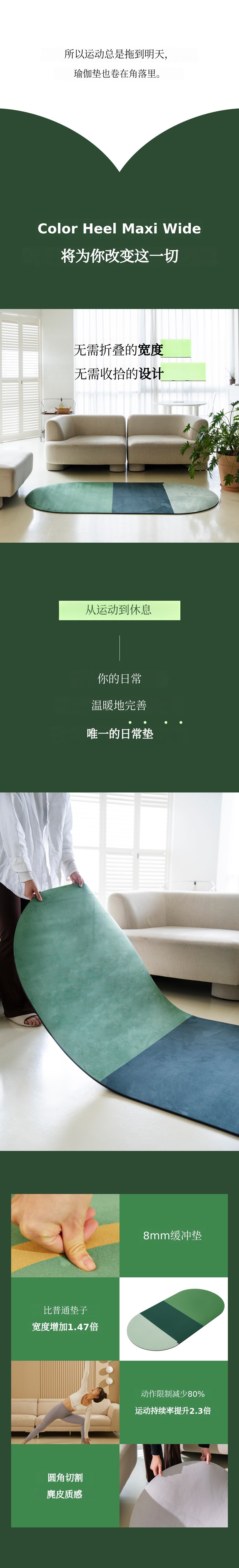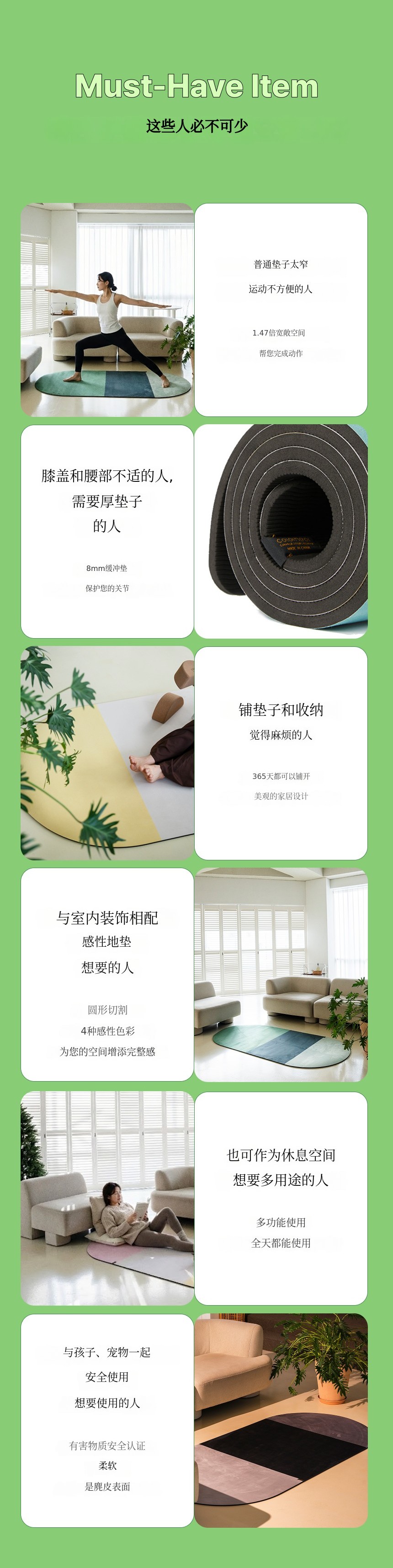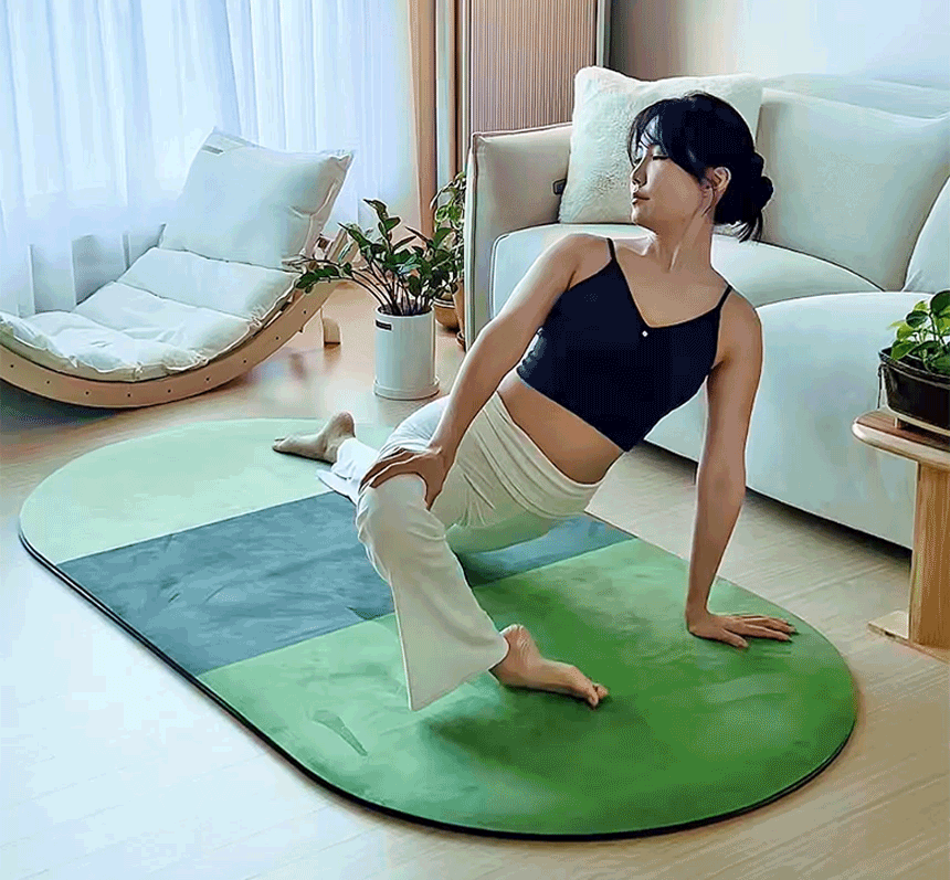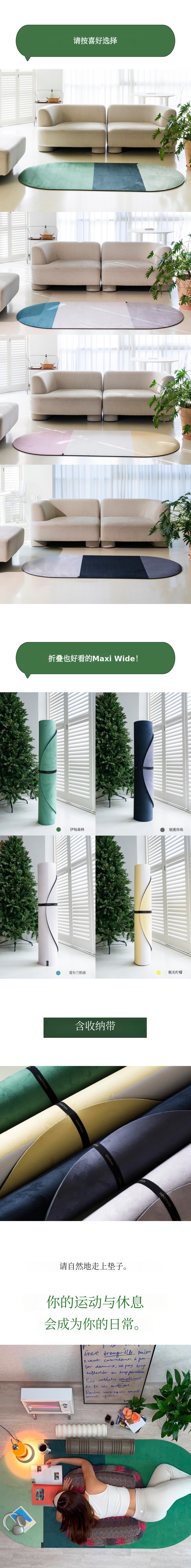 最大的区别是宽度和设计。比普通垫子宽1.47倍,更加舒适。圆角切割和感性配色,即使铺在客厅也很自然。