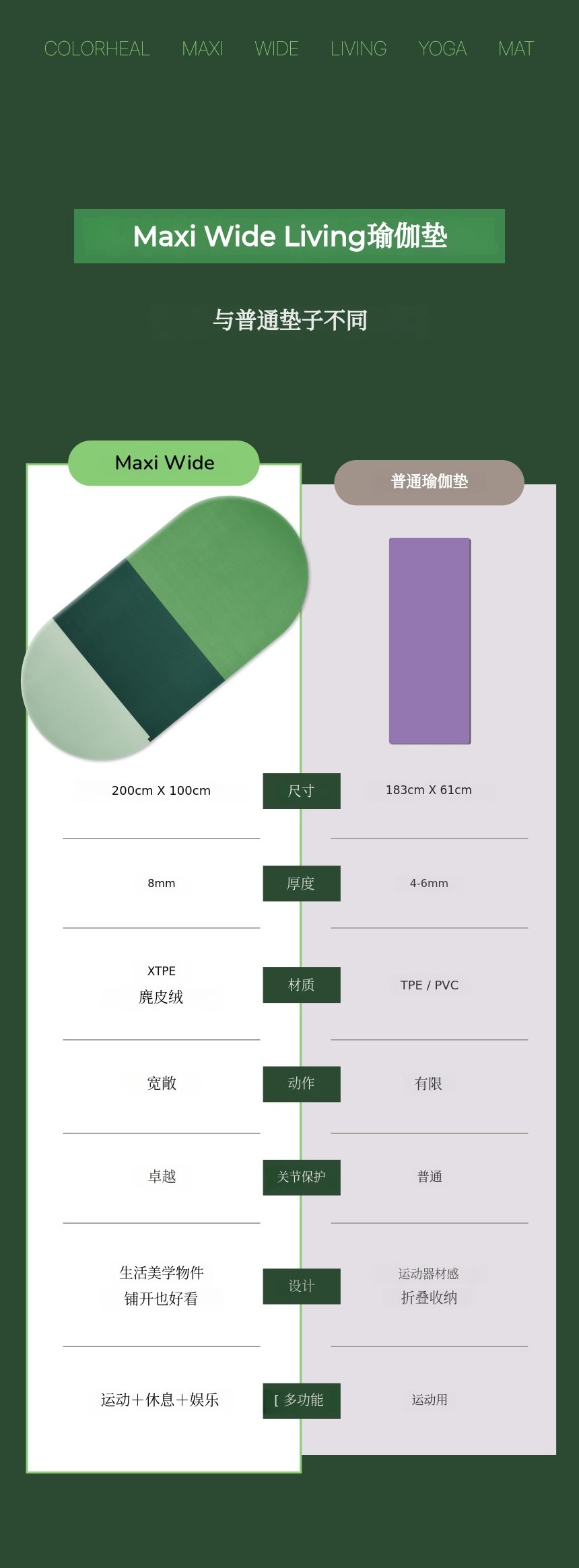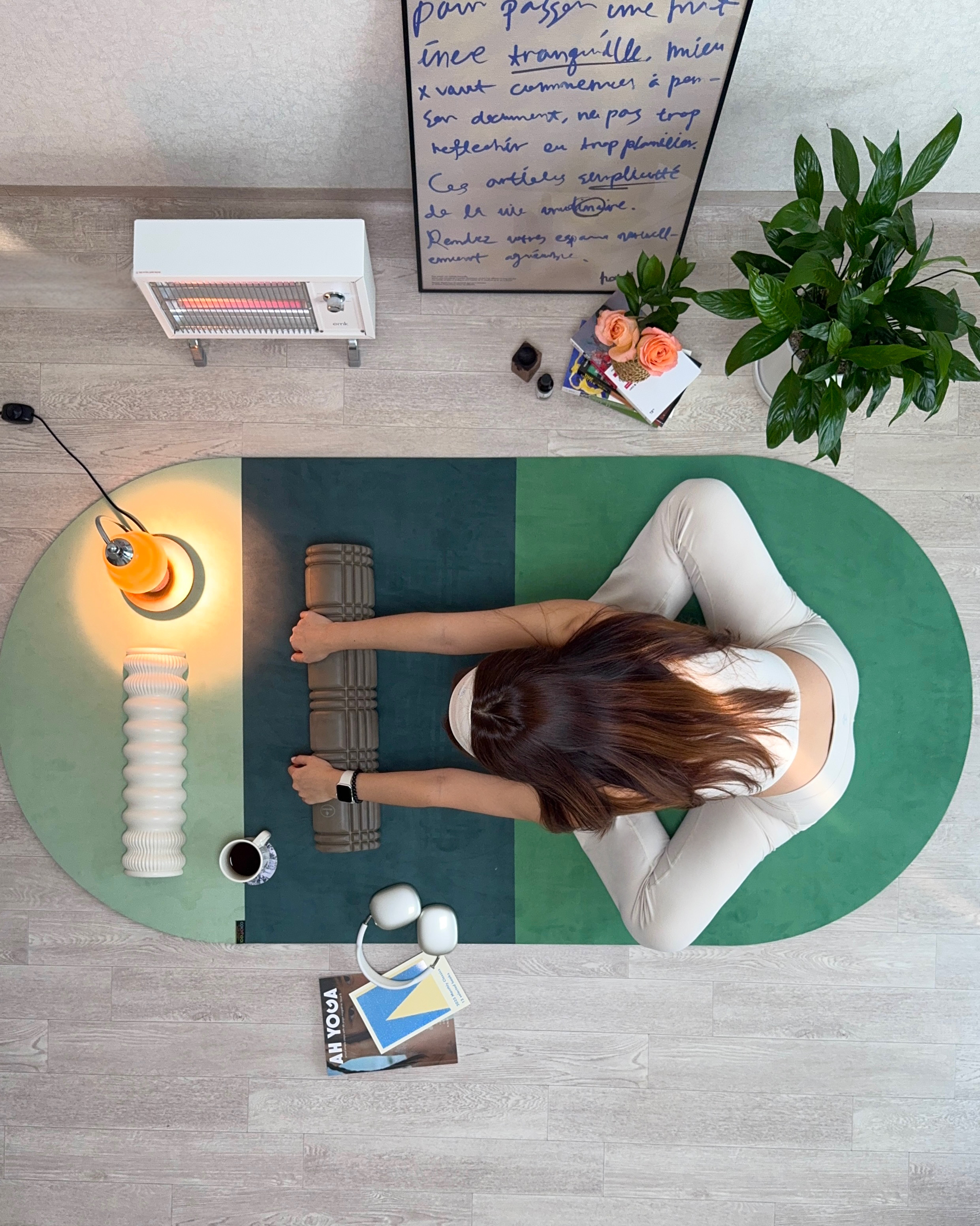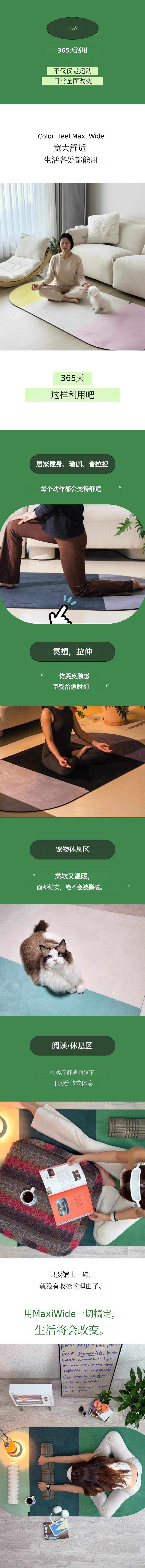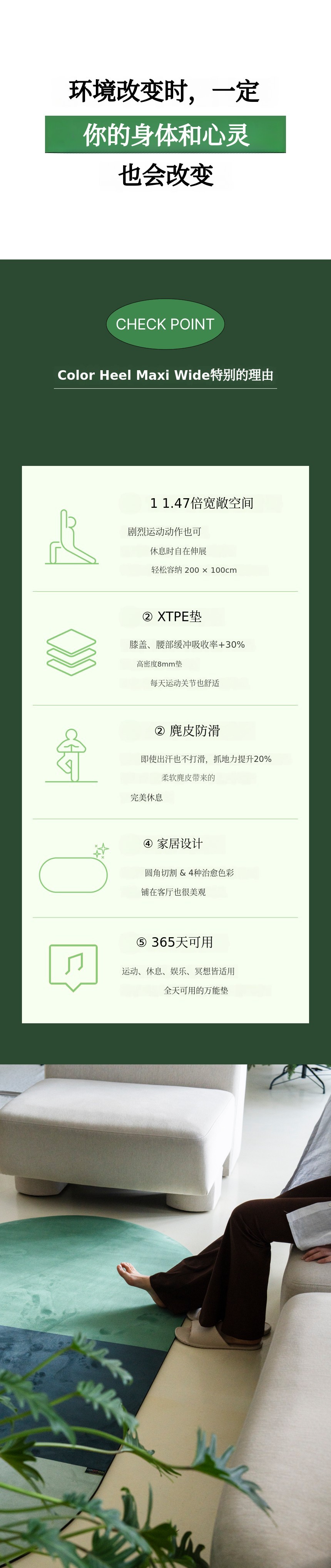 最大的区别是宽度和设计。比普通垫子宽1.47倍,更加舒适。圆角切割和感性配色,即使铺在客厅也很自然。