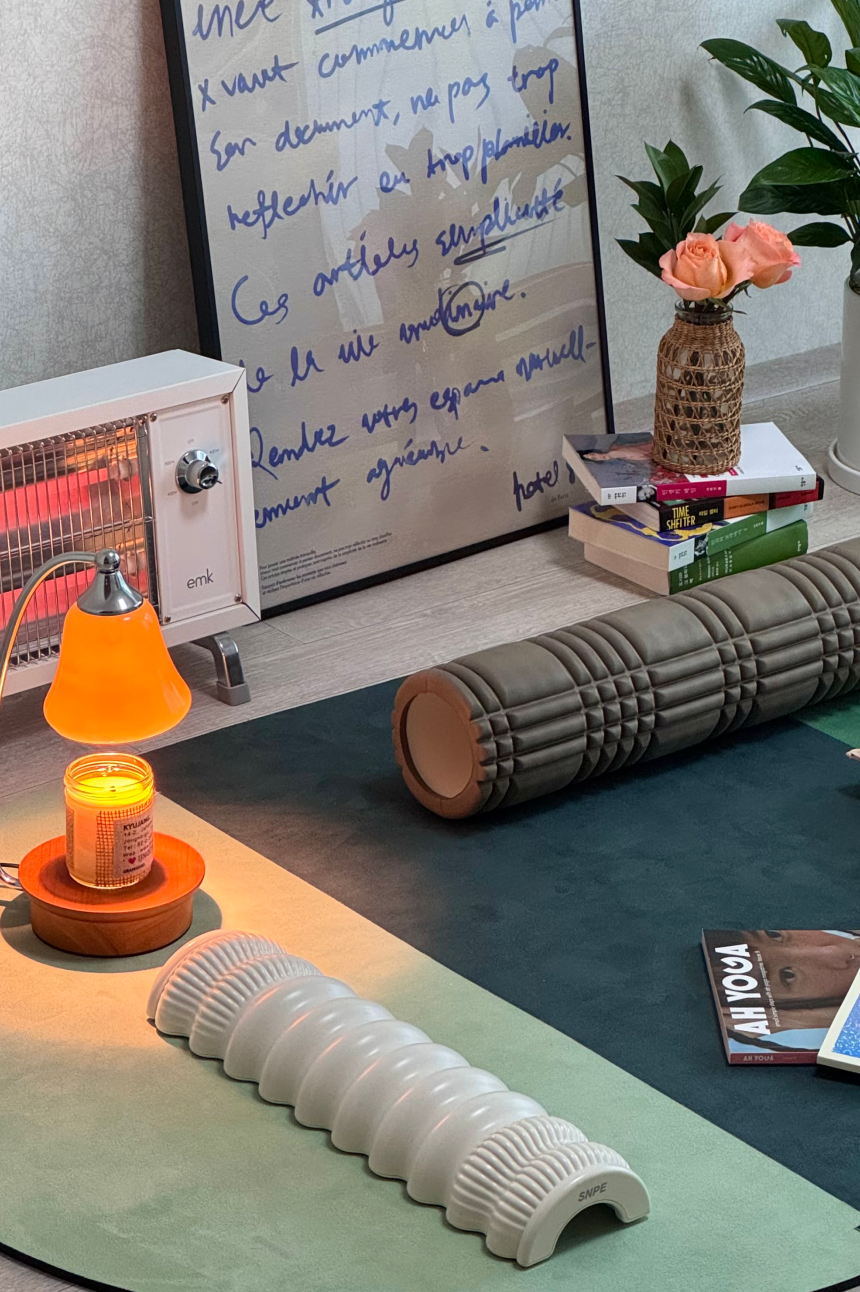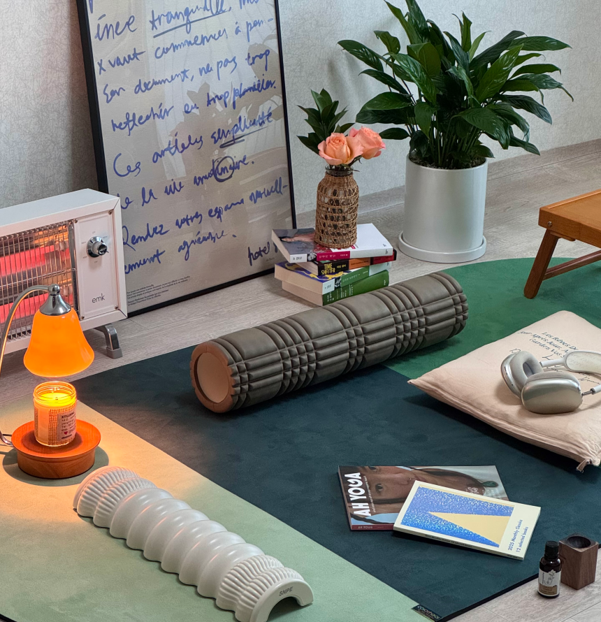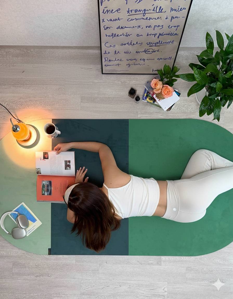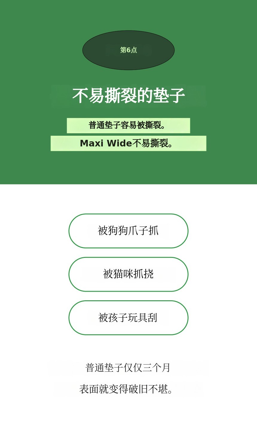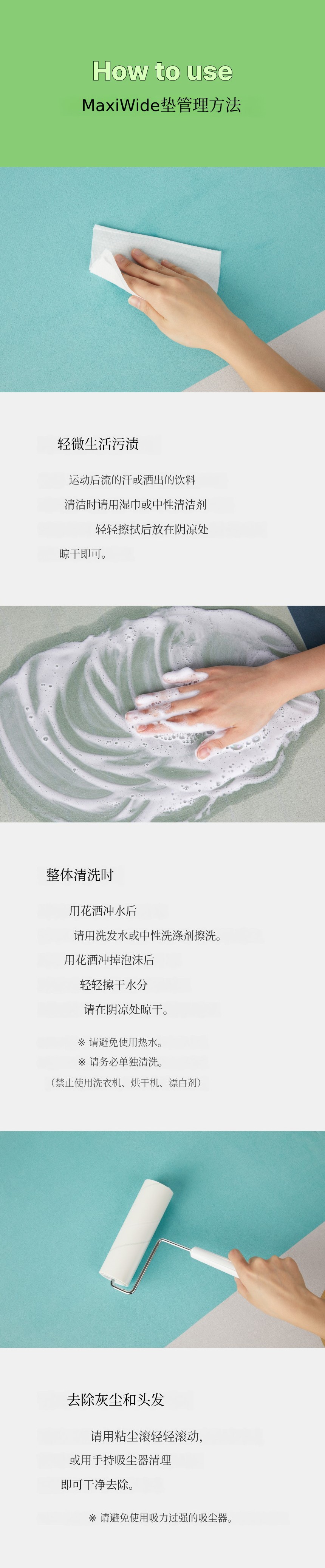 最大的区别是宽度和设计。比普通垫子宽1.47倍,更加舒适。圆角切割和感性配色,即使铺在客厅也很自然。