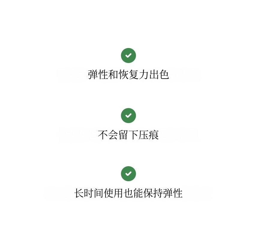 用于运动、拉伸、日常生活后,对短暂的压力能迅速恢复。椅子、书桌等重家具短时间(10~20分钟)放置时也容易恢复,但不适合长时间承重使用。