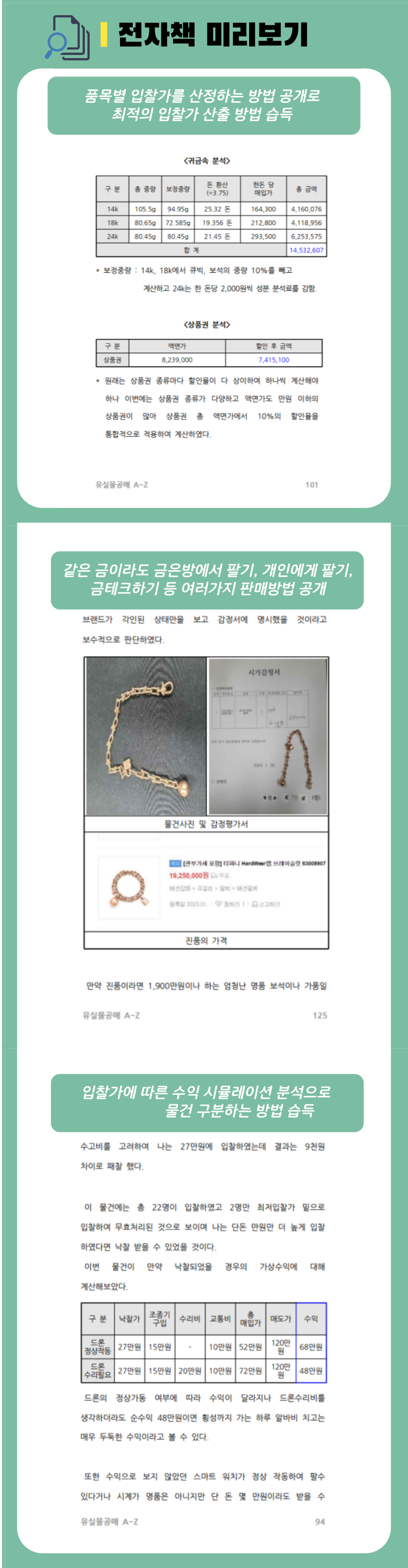 A. 유실물 공매는 여러 종류의 물건을 일괄로 낙찰받는데 모든 물건이 감정가보다 높게 팔리지는 않습니다. 예를 들어 금은 감정가와 거의 같거나 낮은 금액으로 팔수 있는데 낙찰받은 물건이 금으로만 이루어져 있다면 수익을 내기 어렵겠죠?