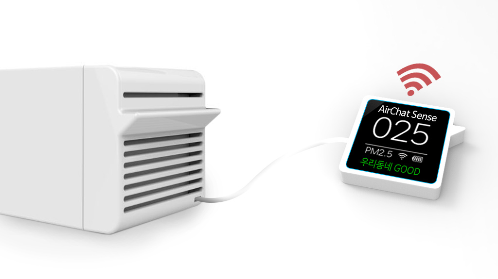 실내 미세먼지를 측정하는 에어챗 sense를 제작합니다. 에어챗 sense는 에어챗과 연동되어 미세먼지 농도에 따라 자동으로 켜고 끌 수 있도록 모듈 연계 방식으로 개발될 예정입니다. 또한, 측정된 미세먼지 데이터는 자체 서버로 저장하여 우리 동네의 현재 미세먼지 현황을 공공 서비스로 제공할 예정입니다.*