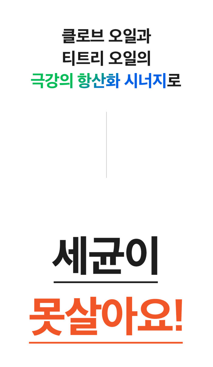 클로브와 티트리 성분을 오일 형태로 사용하는 이유는 촉촉함 유지 때문입니다. 오일이 치약의 유효 성분들을 더 많이 침투시키도록 도와구강 내에 유효 성분이 오래 머물러 촉촉함이 유지됩니다.