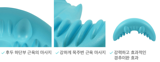 Blue는 특정 지압점이 '후두하근(천주혈)과 두판상근(풍지혈)'을 중심으로 목 근육의 긴장과 경직의 가장 큰 요인 중 하나인 근육그룹을 타켓으로 마사지합니다.