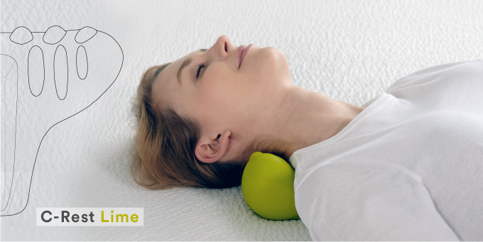 한의학과 인체공학을 바탕으로 디자인한 C-Rest는 경추지지대와 지압점이 사용자의 체중을 이용하여 뒷 목의 근육과 어깨의 긴장을 풀어줍니다.