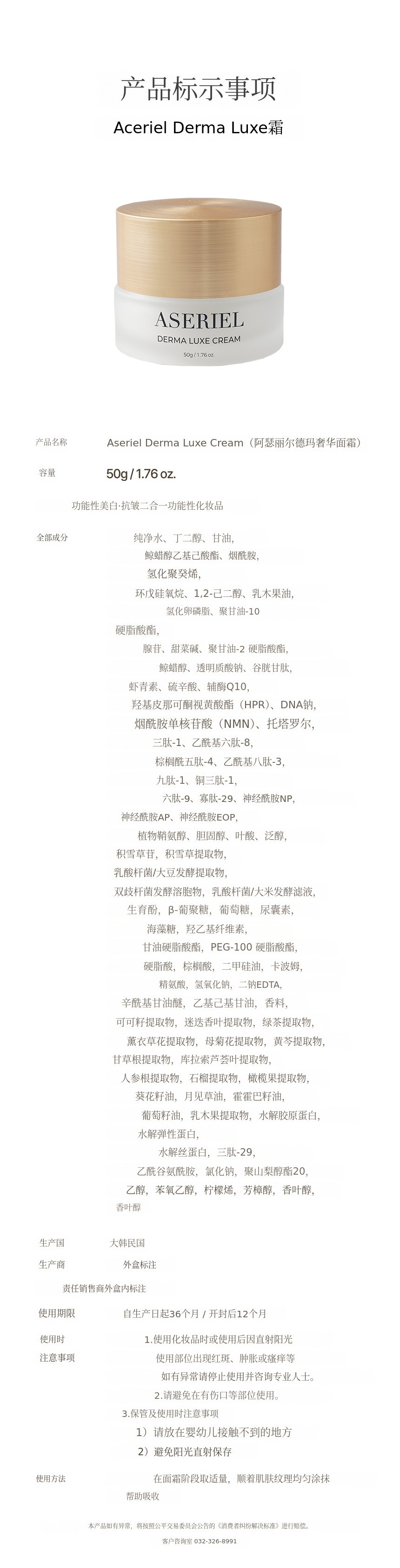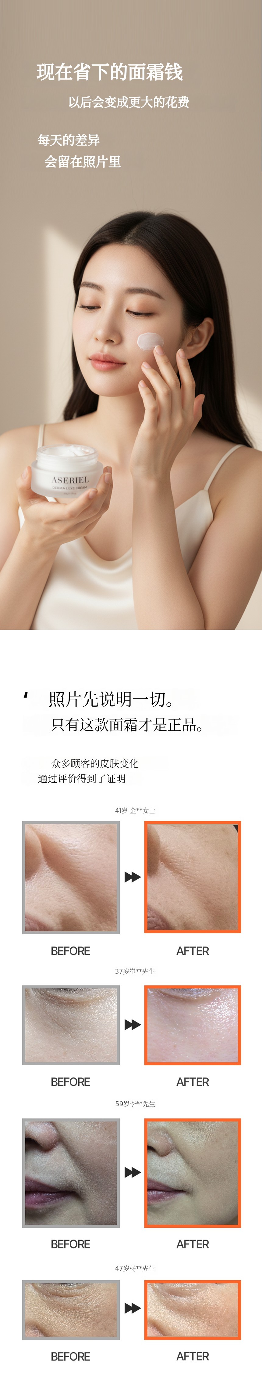 皮肤烦恼越多,护肤流程往往越长,但在忙碌的日常中,反而简单且持续的护肤流程更为重要。Aseriel面霜以含有高端成分为核心,致力于全方位护理干燥、弹力下降、皱纹及色斑等皮肤问题。