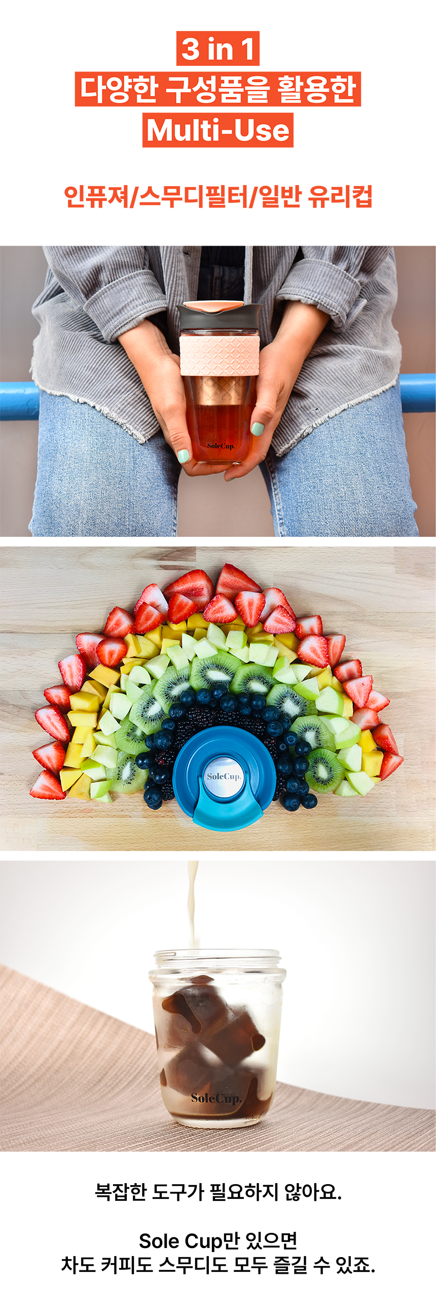 SoleCup 티머그는 복잡한 도구 없이도 쉽게 차를 즐길 수 있는 제품입니다. 차를 좋아하는 분들, 아니면 차를 시작하고 싶지만 진입장벽 때문에 망설였던 분들이, 차를 편안하게 즐기고, 몸과 마음을 건강하게 만들 수 있는 시간이 되었으면 좋겠습니다.