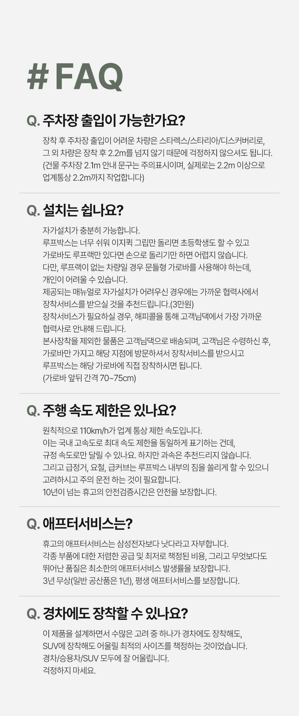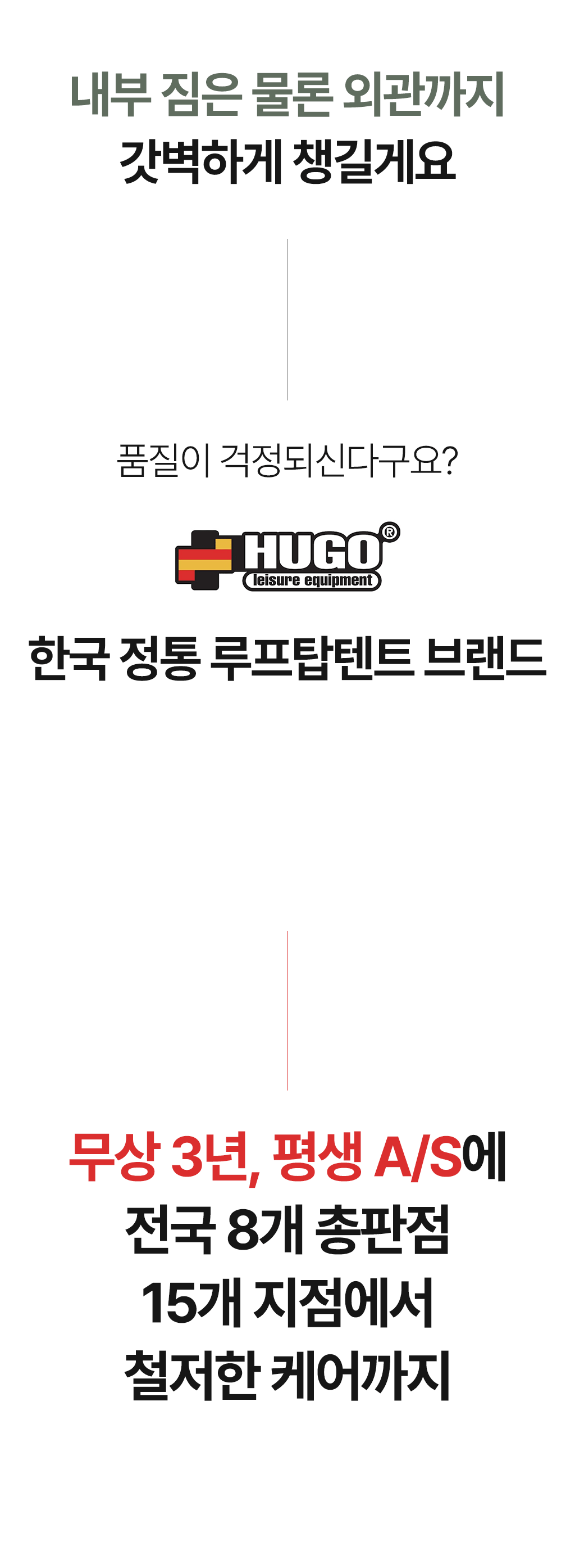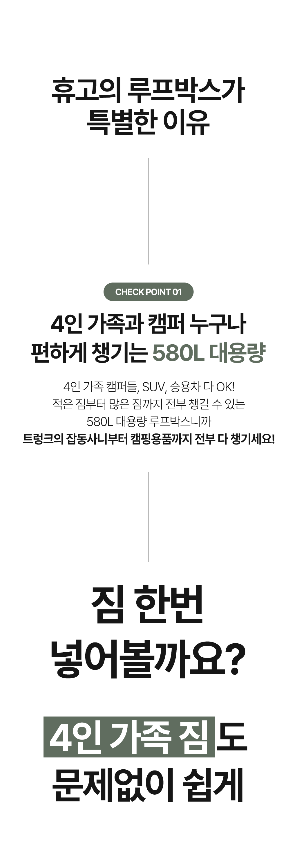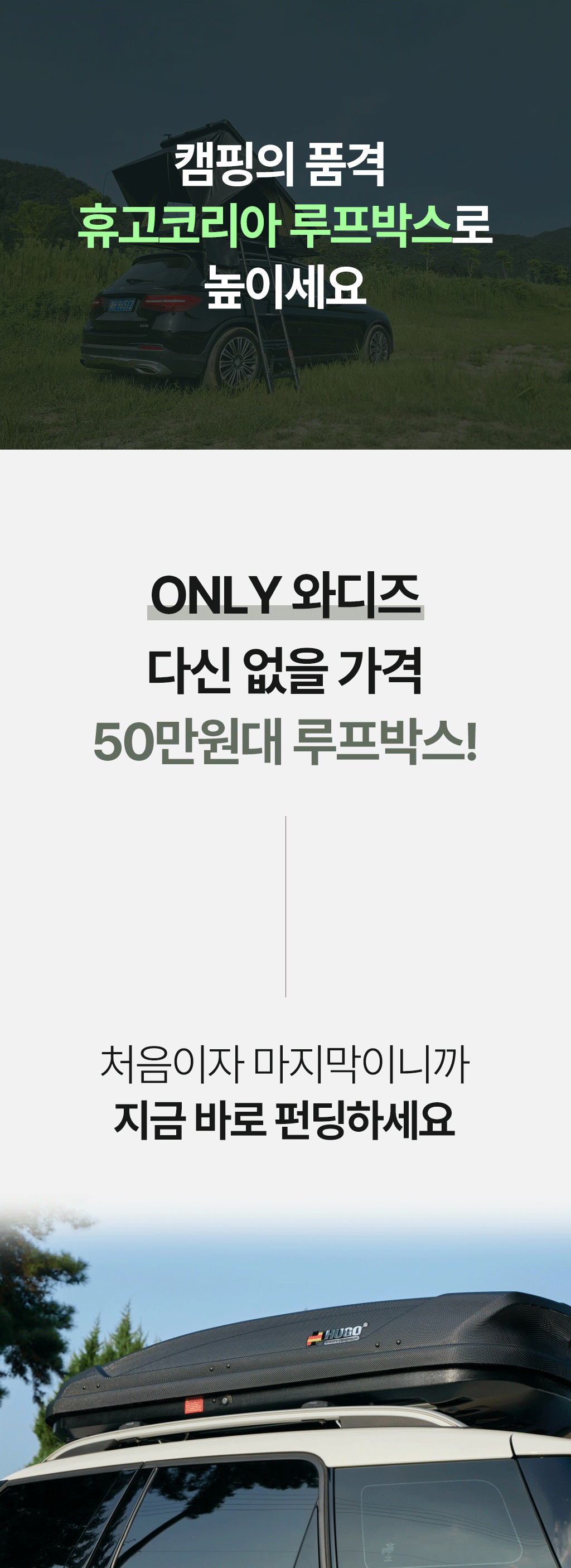2024년은 휴고 런칭 10주년이기도 해서 10주년 기념 신제품을 내놓게 되었으며, 모델명처럼 국내 출시한 루프박스 중 폭이 가장 넓은 98cm를 적용해서 대부분의 차량에 꽉 차는 느낌으로 심미감을 높였으며, 어닝 등 다른 튜닝용품들을 장착하는 것을 고려하여, 가능한 최대의 폭을 실현했습니다.