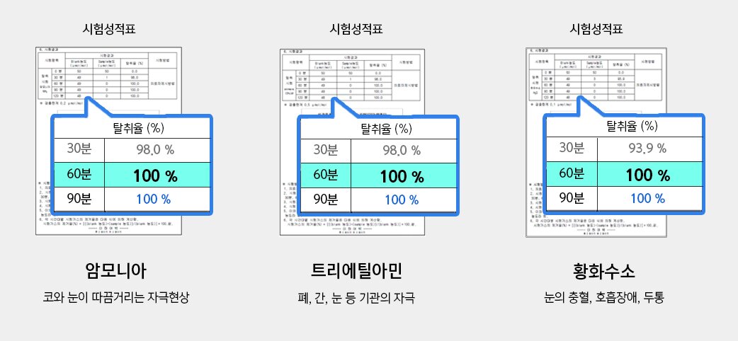 #공신력 있는 인증 기관의 악취, 유해성분 제거 성능 결과를 장소별로 확인해보세요