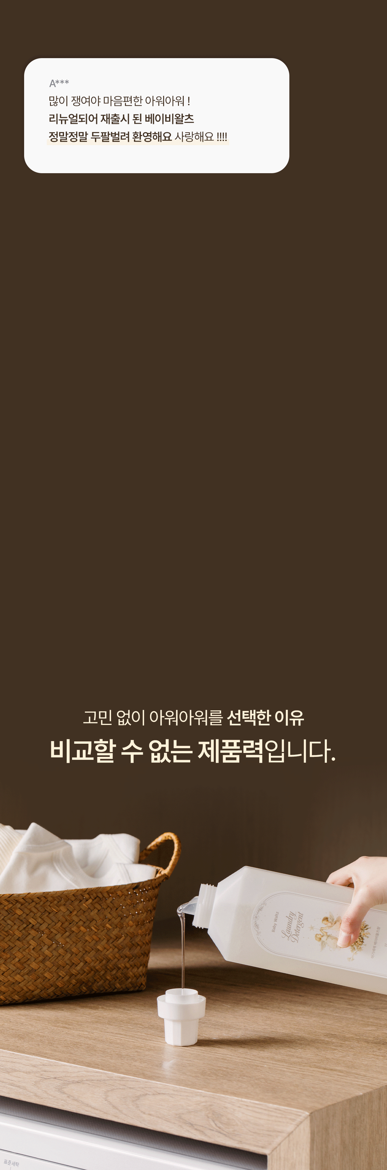 성분은 더 순하게, 세정력은 더 강하게, 향은 더 섬세하게. 이제는 진짜 아기세제를 경험해보세요.