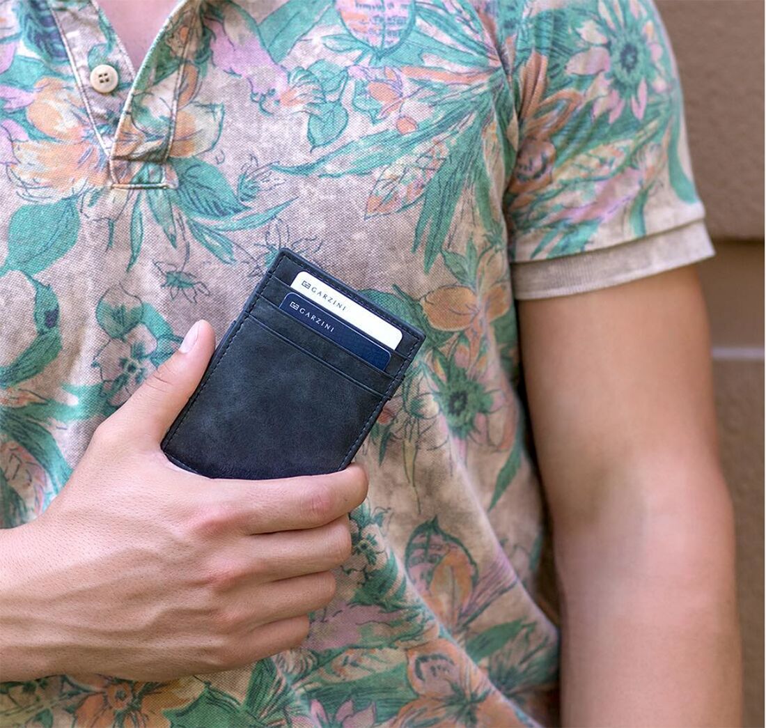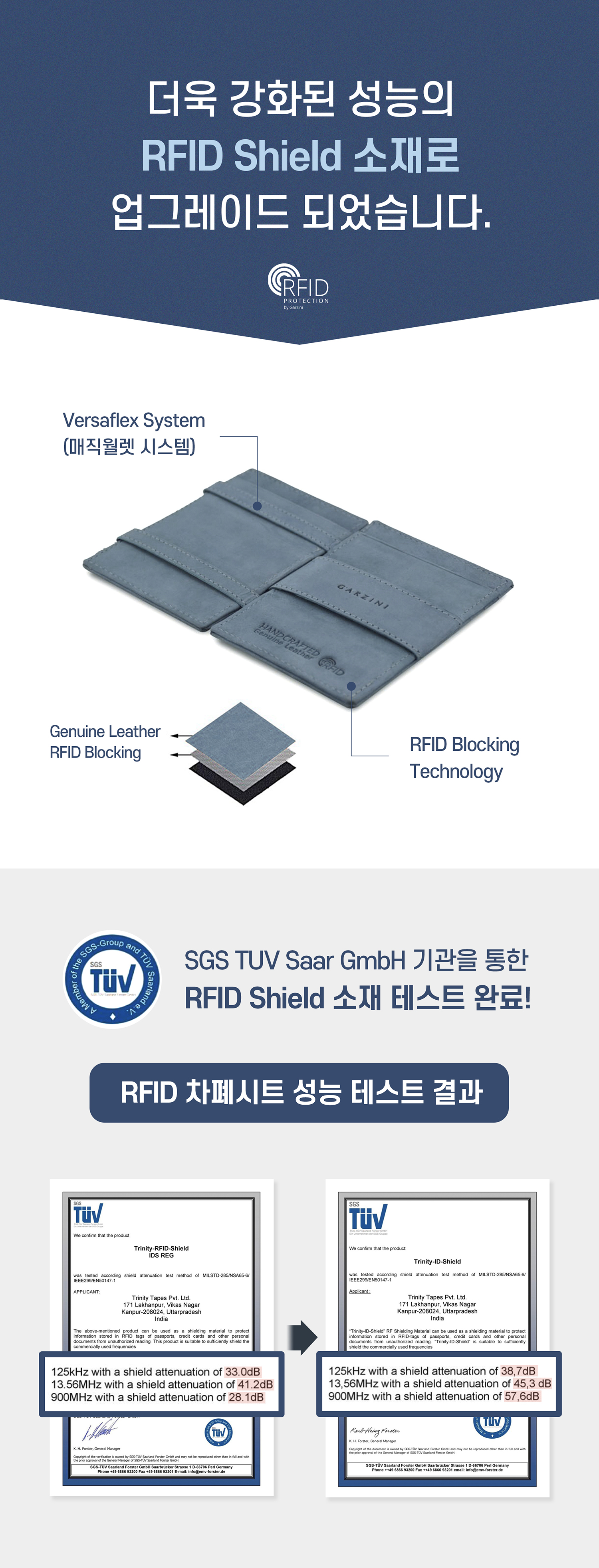 직불카드, 신용카드, 여권, 심지어 스마트폰은 RFID 또는 무선으로 주파수를 식별하는 기술이 내장되어 있습니다. 카드를 밖으로 꺼내지 않고 비접촉으로 정보를 읽어내는 방식으로 새로운 형태의 디지털 도용, 스키밍(Skimming)범죄에 소중한 개인 정보들이 무방비 상태로 노출되어 있습니다. 가르찌니 매직월렛에는 RFID Blocking Shield 가 포함되어 있어 언제 어디서나 지갑 속의 카드 정보 유출 및 도용으로 부터 안전합니다. 특히나 해외 여행 다닐 때, 소중한 신용카드를 지킬 수 있는 필수품이랍니다!