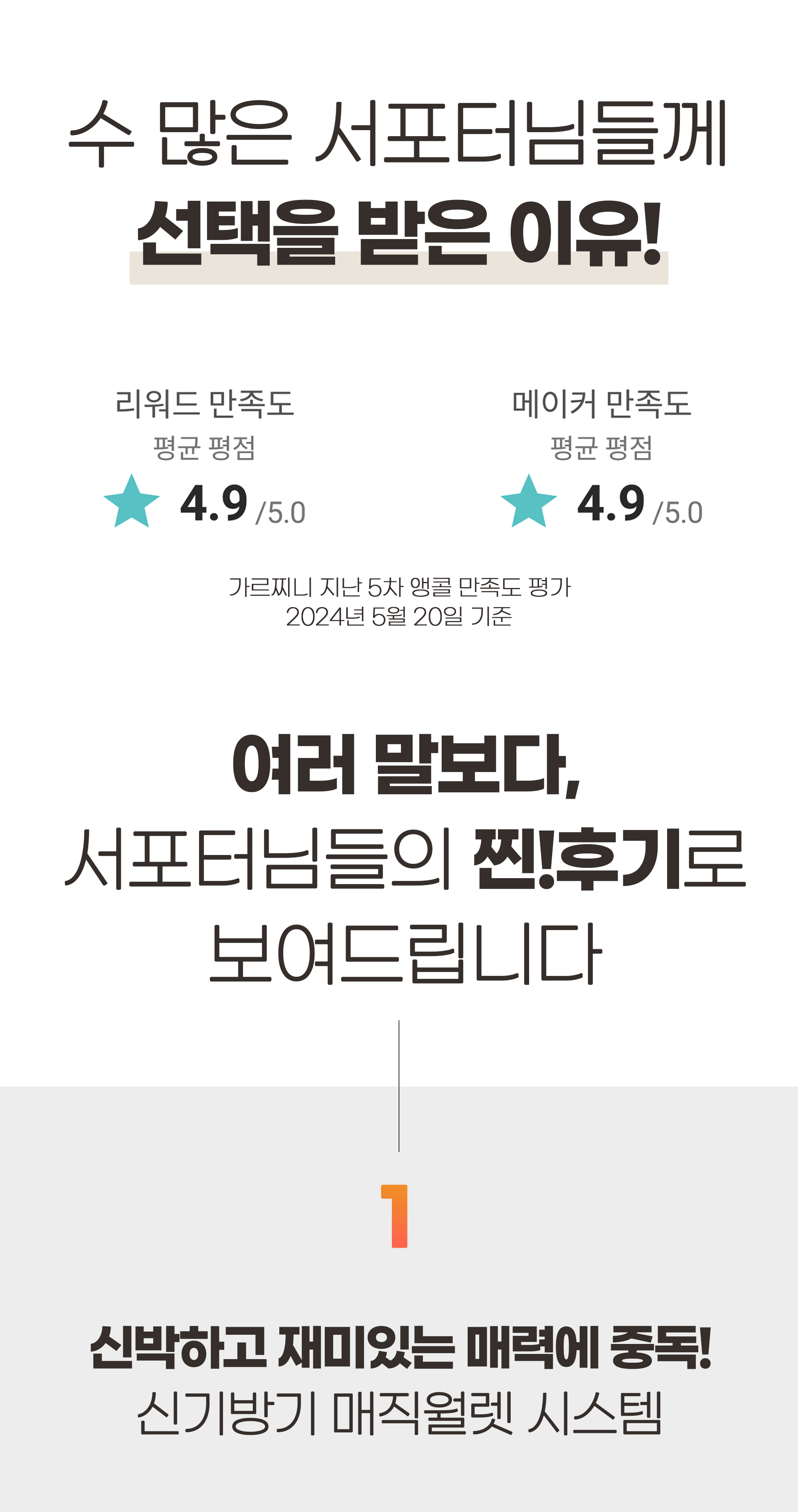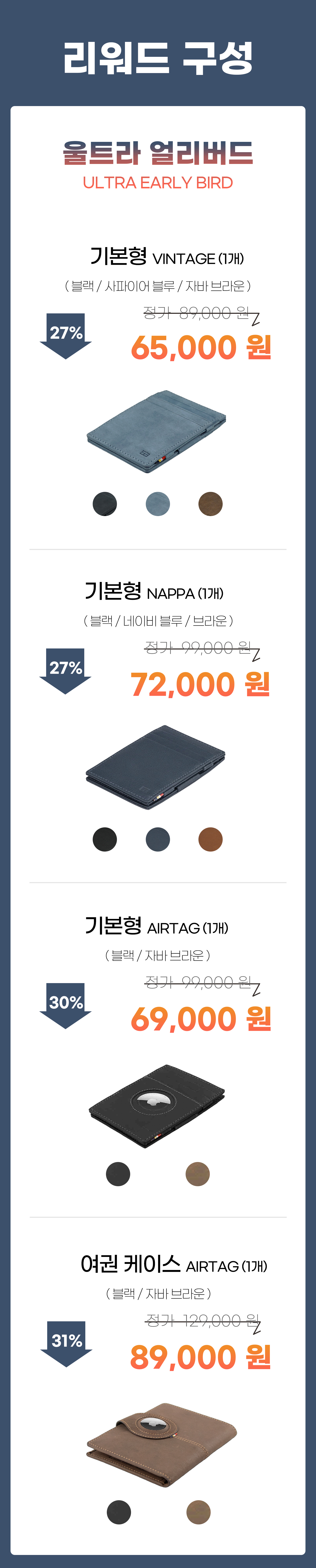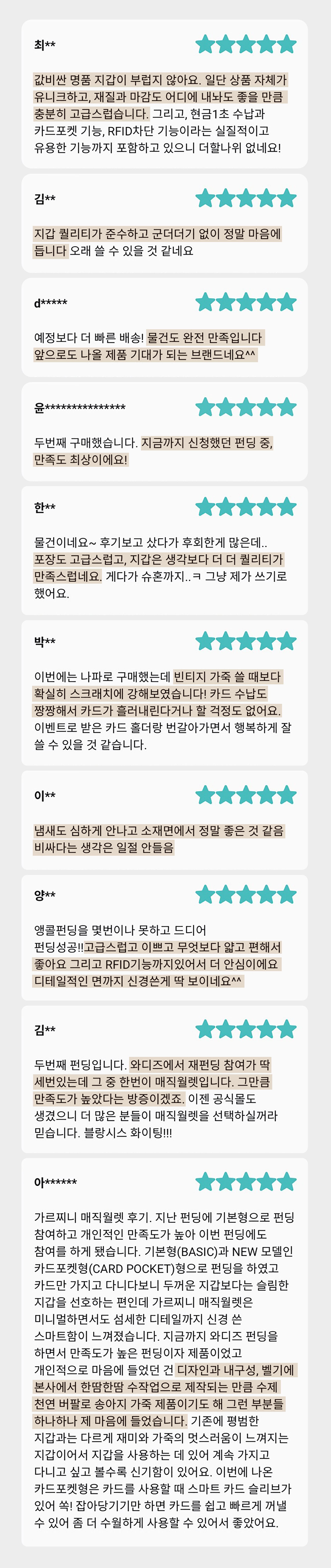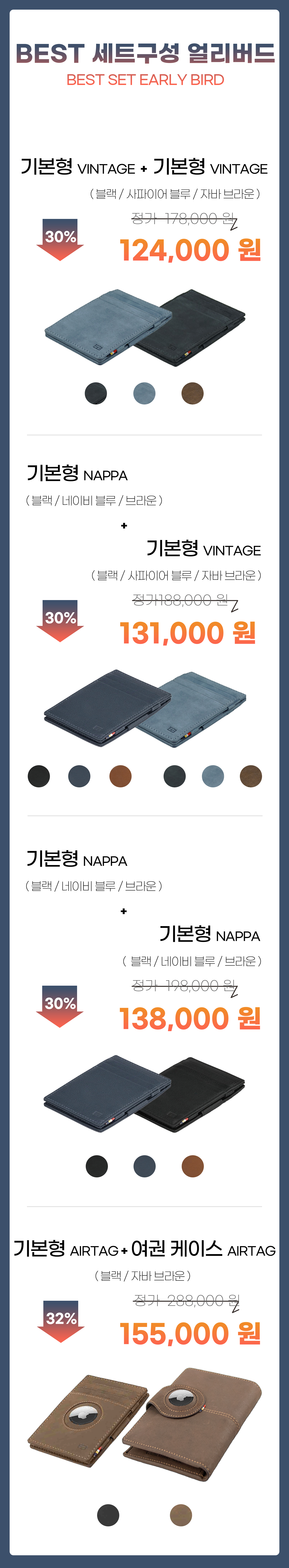 가르찌니 매직월렛을 처음 만났던 그 때를 잊을 수가 없습니다. 어디에서도 볼수 없었던 Versaflex System의 신박함과 수납의 용이성, 패셔너블하고 심플한 디자인에 반했습니다. 2016년 독일에서 처음 가르찌니와 인연을 맺고 줄곧 매직월렛을 사용하면서, 시간이 흐를수록 자연스럽고 더욱 멋스러운 기품을 더하는 가르찌니 천연가죽의 매력에 흠뻑 빠졌습니다. 참 많은 서포터님들께 받은 과분한 사랑에 힘입어 지난 2년간 수많은 앵콜요청을 보내주신 덕분에 다시 한번 신모델과 함께 가르찌니 매직월렛을 소개해 드릴 수 있어서 큰 영광입니다. 이번 앵콜 펀딩에서는 가장 큰 사랑을 받았던 BEST 기본형 모델과 함께 에어태그 매직월렛 & 여권케이스 모델까지 함께 소개해 드릴 수 있어 더욱 기쁜 마음입니다. 앞으로도 쭉~~더 많은 서포터님들과 함께 "재미에 멋을 더하는 가르찌니 매직월렛" 의 매력을 함께 만끽하고 싶습니다. 서포터님들의 응원과 지지가 저희에게 큰 힘이됩니다. 꾸준히 성장하고 있는 저희 블랑시스팀을 지켜봐 주세요. 감사합니다.♡