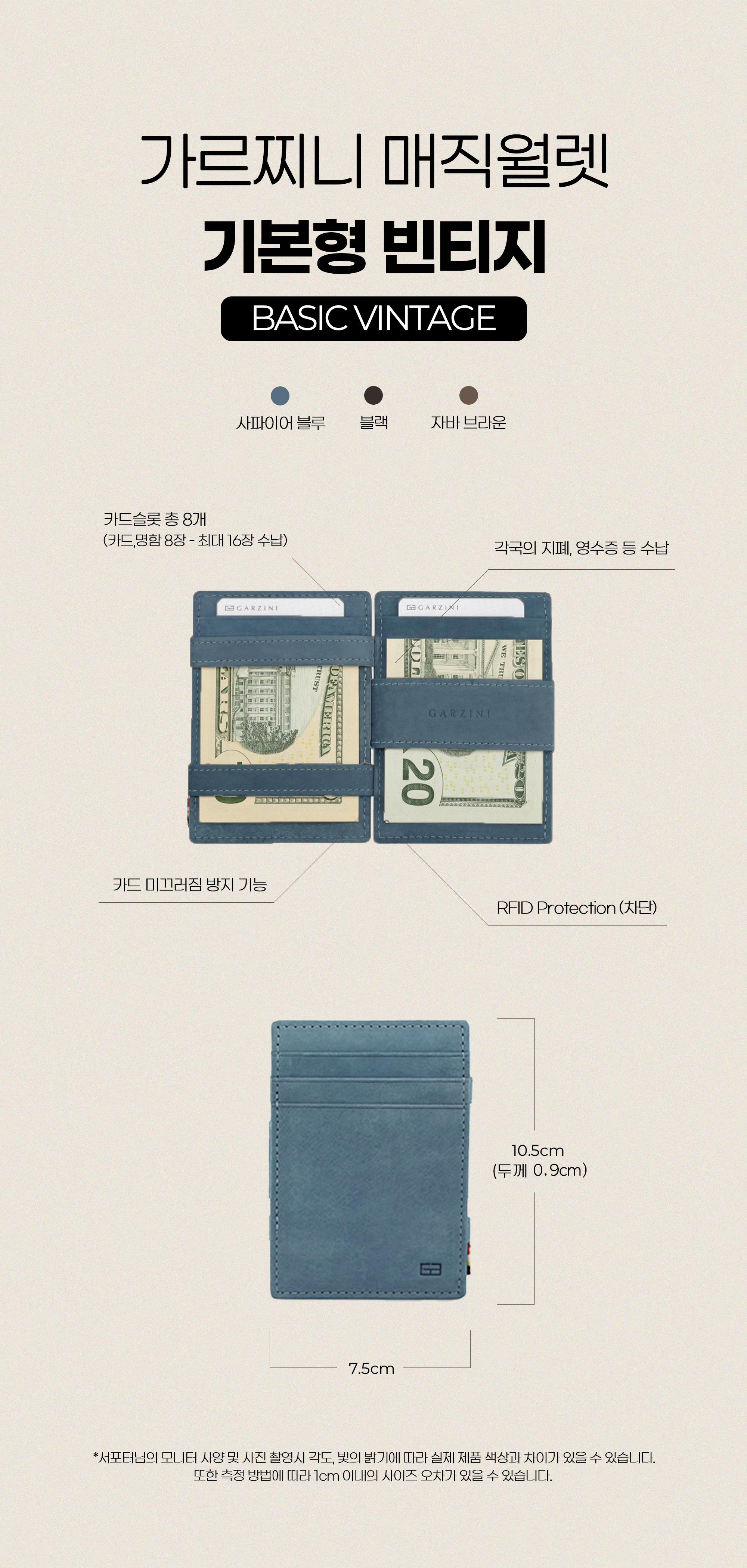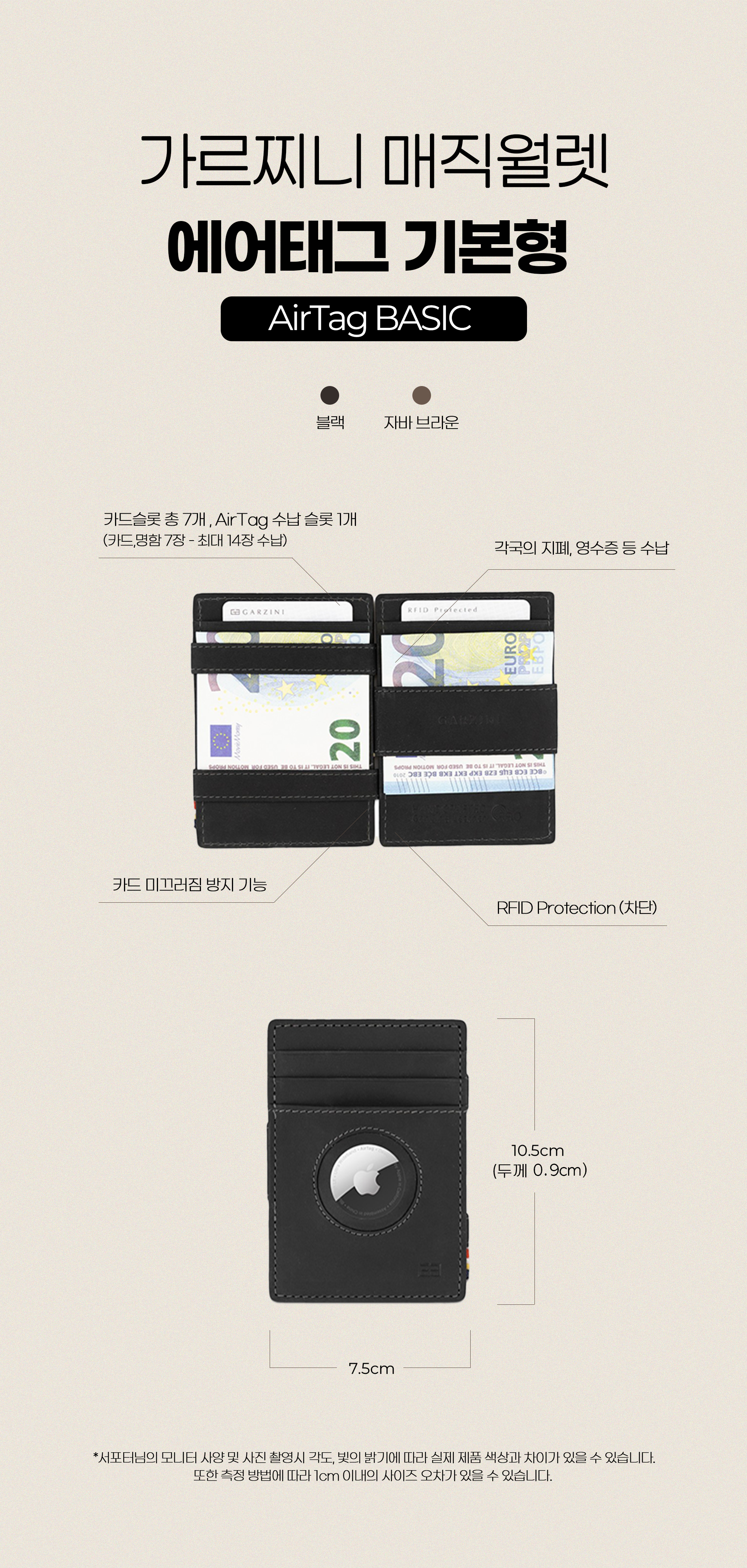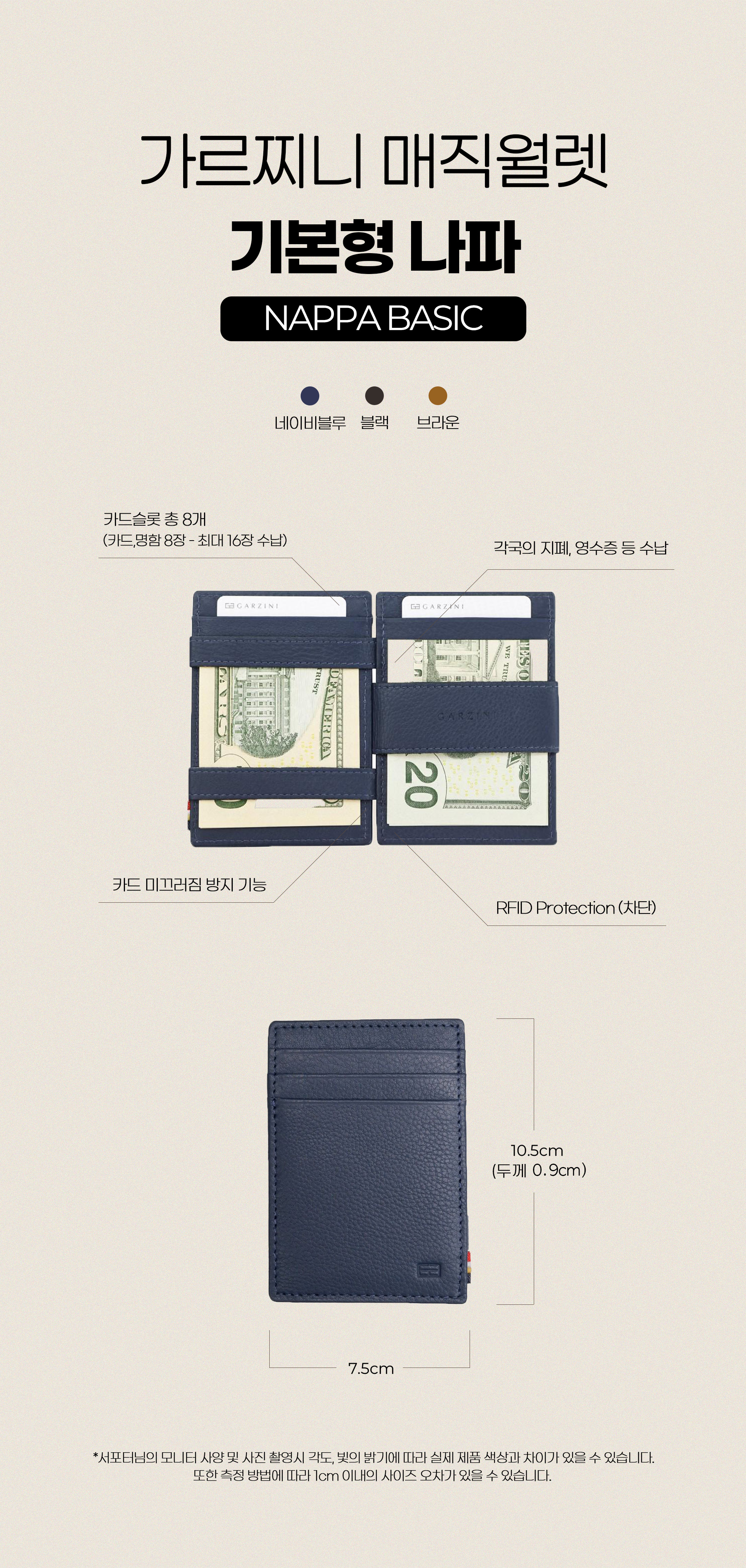 가르찌니 매직월렛 기본형 NAPPA 가로: 7.5 cm x 세로: 10.5 cm x 높이: 0.9 cm