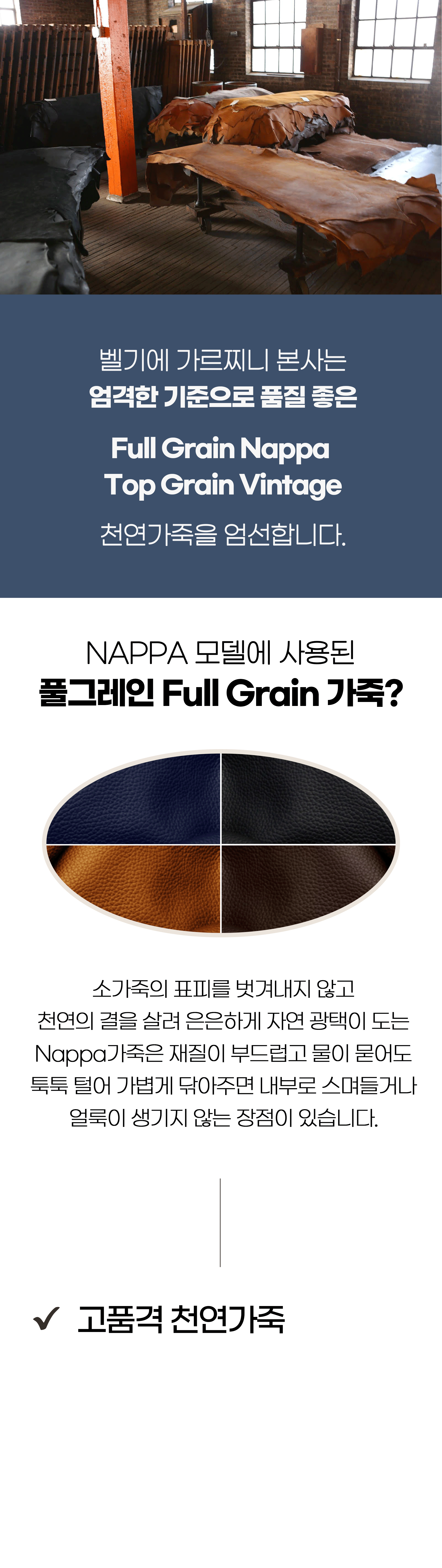 (기본형 VINTAGE 모델에 사용된 부드럽고 따스한 느낌의 천연 버팔로 소가죽)