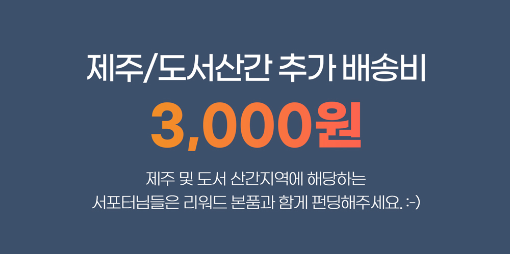 4) 도서/산간지방/제주도의 경우,펀딩 시 추가 배송비 3000원 리워드를 선택해 주세요.