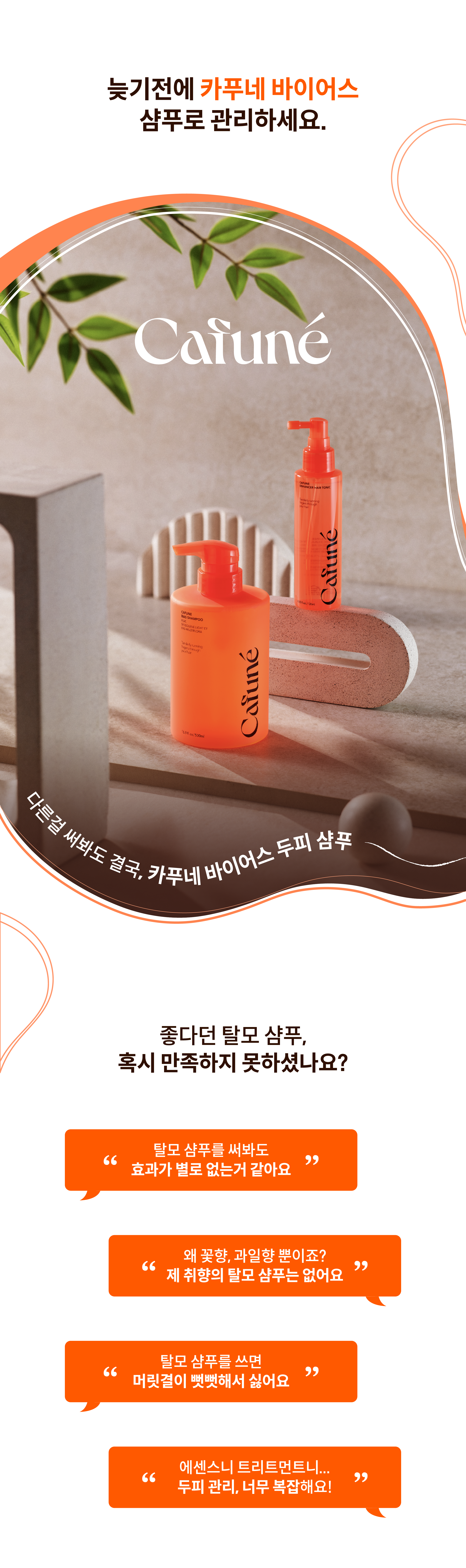 카푸네 바이어스 샴푸와 카푸네 인핸서 헤어토닉을 통해 머리 고민을 덜어 보세요!