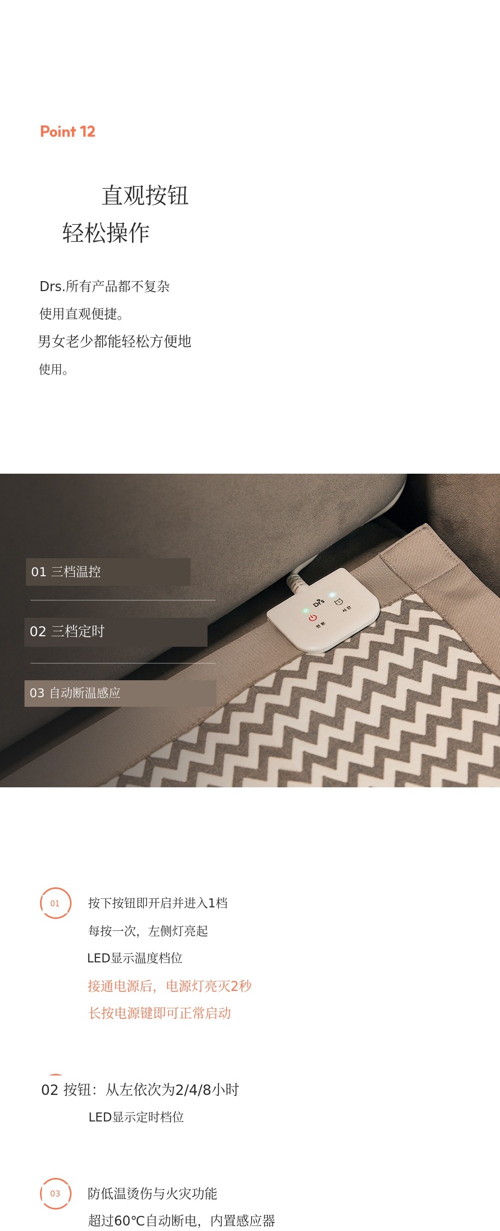 Drs是基于20余年纤维相关医疗器械制造经验的Dr.Supply技术实力,为了守护支持者们的健康温度而创立的专业温热器品牌。在冬季越来越漫长的韩国,电热毯变得尤为重要。昼夜温差及室内外温差日益加剧,我们的体温不断升降,影响着免疫力。