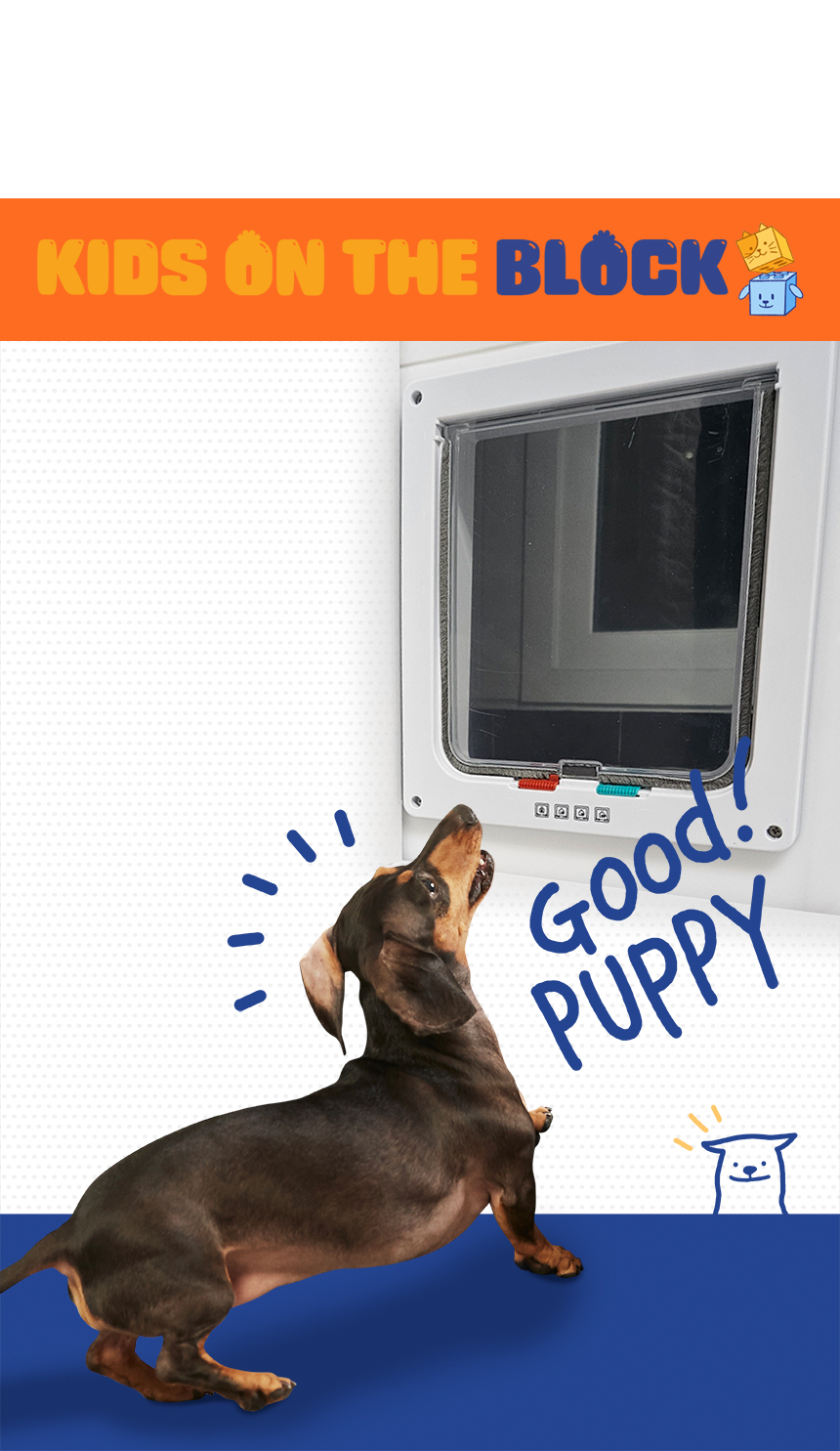 孩子们也需要独立的排便空间。 为你解决防风、防寒、细尘问题, 为孩子们划分敏感时光的宠物门。 快来体验积木式宠物门Kids on the Block。