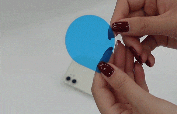 - 반투명한 파란색 필름을 제거하고 모노링 제품을, 링을 열어 스티커 가장자리가 튀어나오지 않고 링이 수평이 되게끔 잘 눌러 부착하여 주십시오.