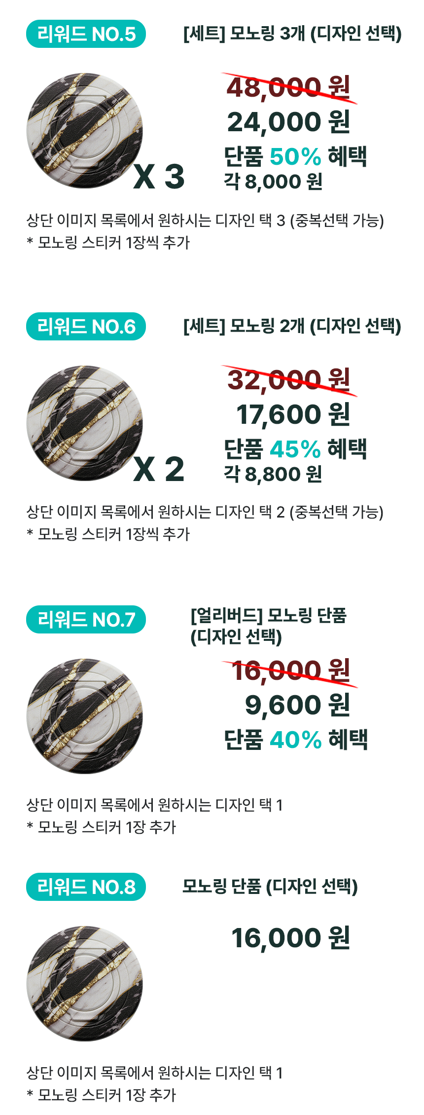 모노링 디자인 선택 목록