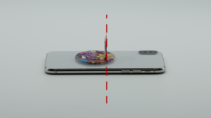 모노링의 링을 열었을 때 스마트폰의 정중앙에 위치하게 부착하는 것을 추천해 드립니다.
