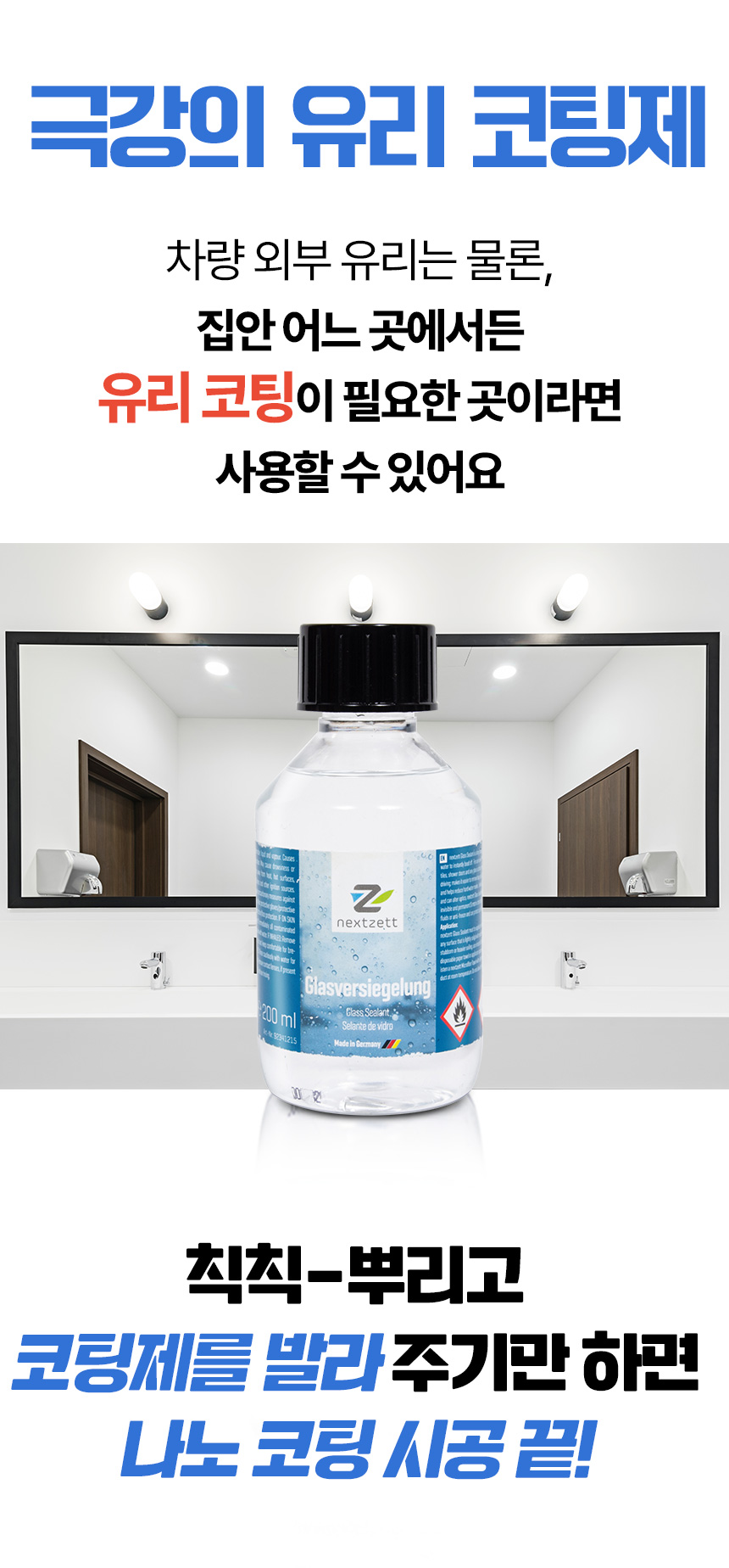 一次涂抹,持效三个月!极致疏水玻璃涂层 雨滴自动滑落 엘케이무역