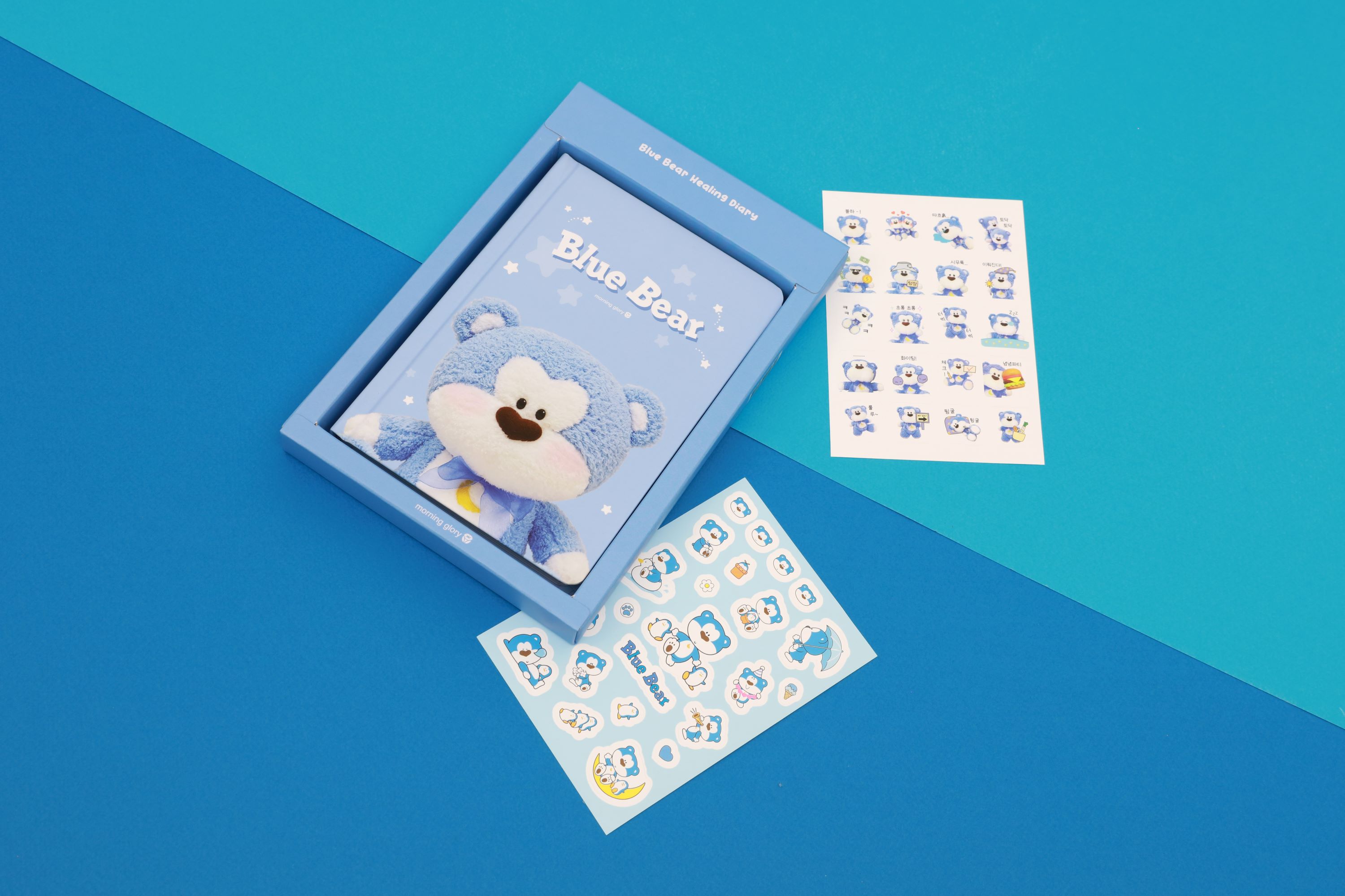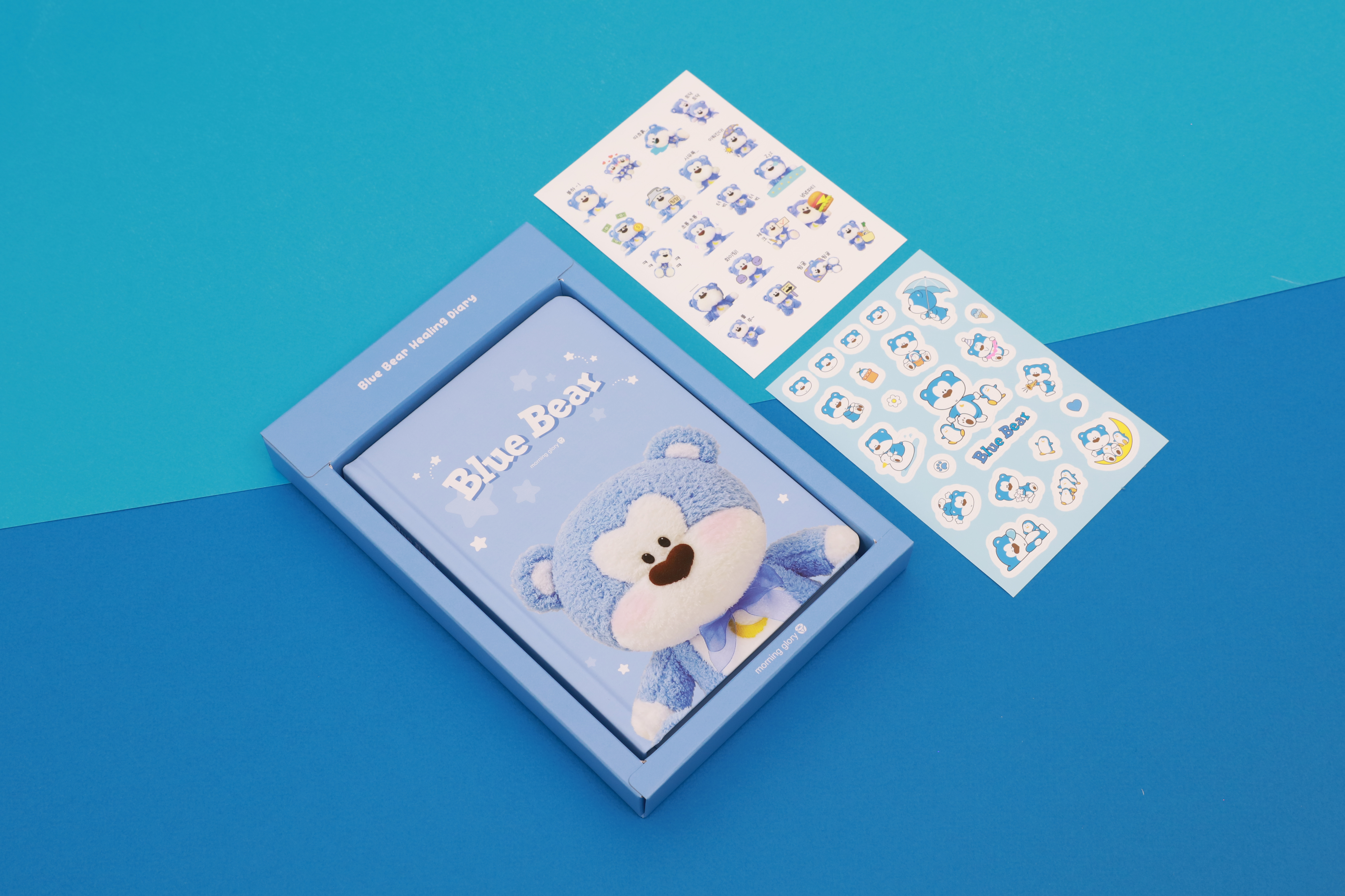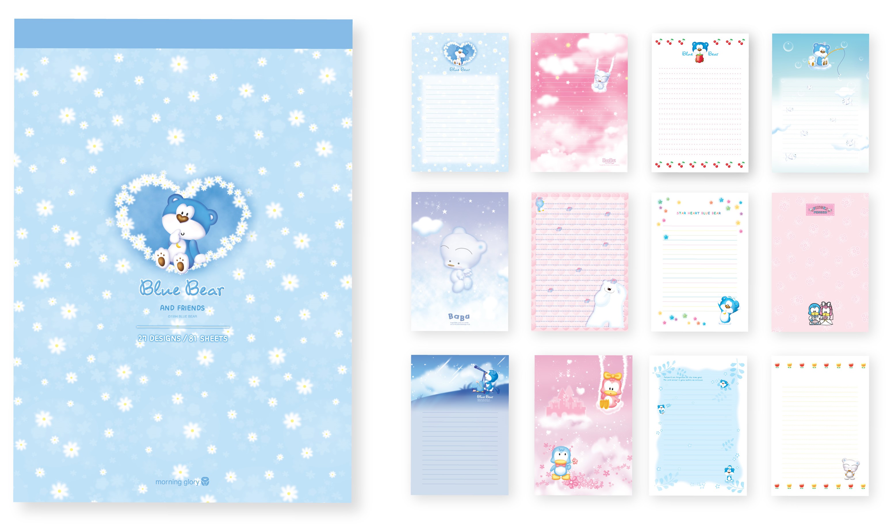 모닝글로리 블루베어는 1990년대 - 2000년대 사랑받았던 팬시 캐릭터로 노트, 필통, 편지지, 엽서, 다이어리, 필기구 등 다양한 문구와 팬시 상품으로 만날 수 있었던 친근하고 대중적인 캐릭터였습니다.