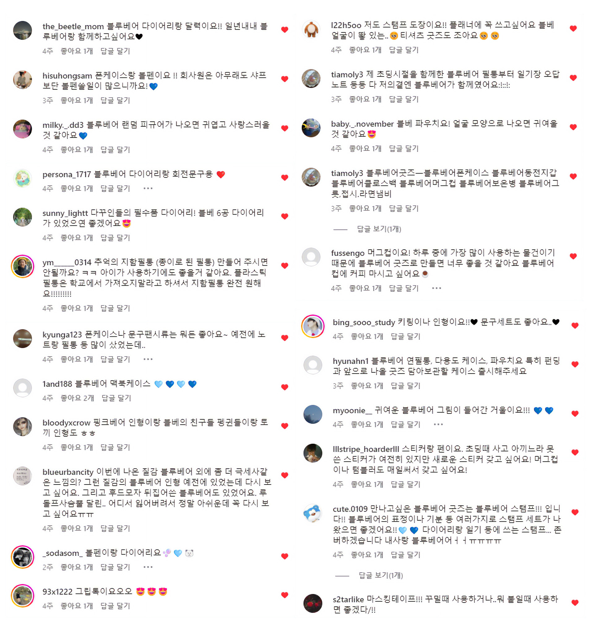 * 블루베어 그리워하는 팬들의 끊임없는 재출시 요청!