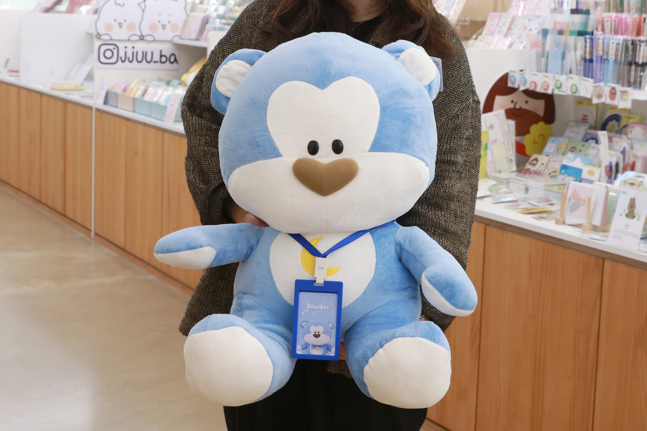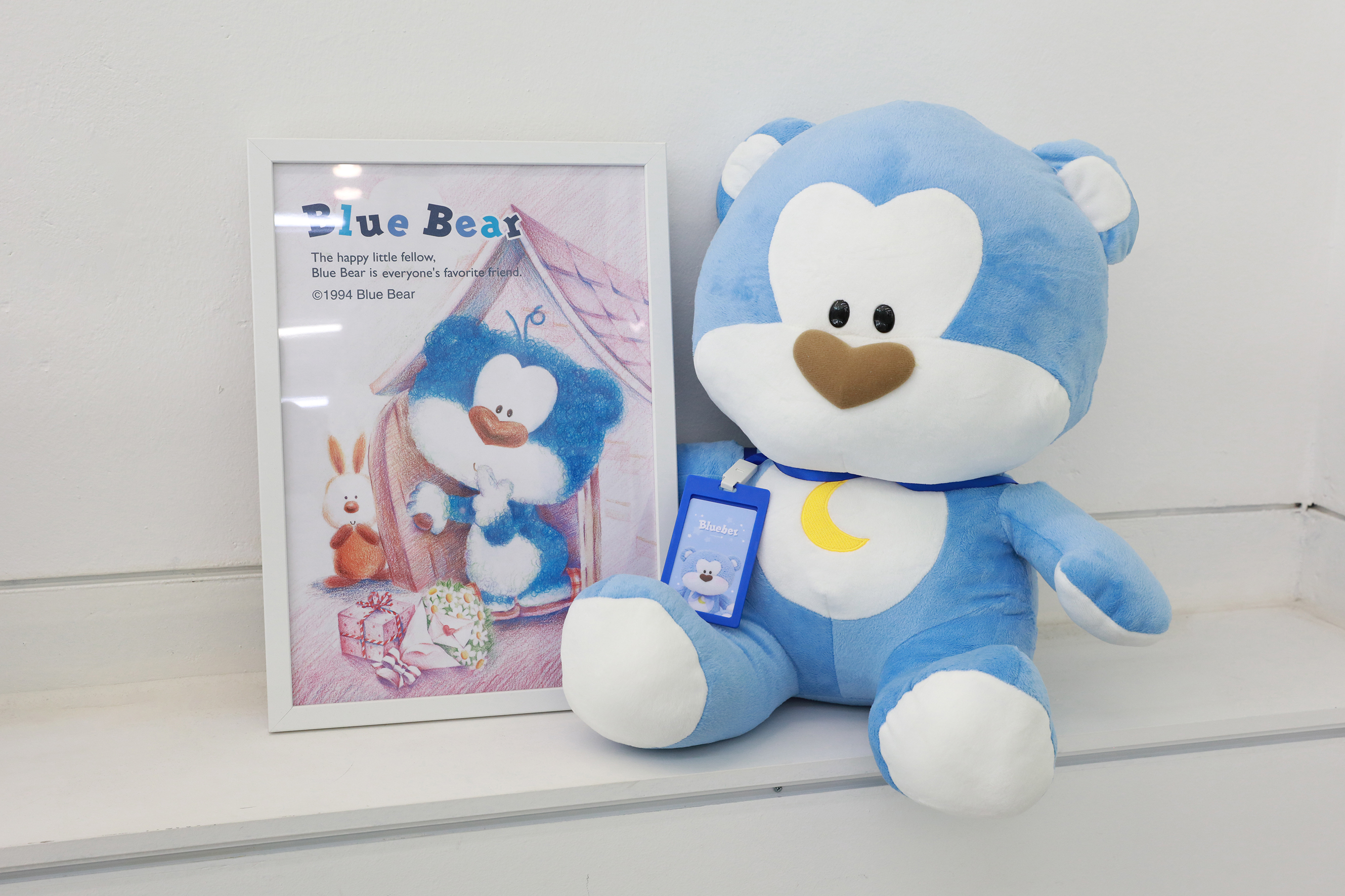 1994년 태어난 블루베어는 포근하고 귀여운 곰돌이 인형에 유니크한 블루컬러를 매치한 개성있는 캐릭터였습니다. 가슴에 새겨진 노란 초승달과 하트 모양 코가 사랑스러웠던 귀여운 곰돌이 친구였죠.