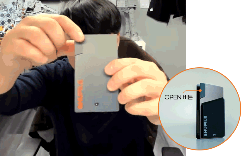 공동창업자인 jack이 슈퍼마켓을 찾아 결제를 하려는 순간 한 손에는 가방과, 다른 한 손에는 지갑을 들고 신용카드를 찾으려는 순간 나머지 카드들이 바닥에 떨어졌습니다. 결제를 하려는 순간 난처한 상황들을 해결하고자 Shuffle Wallet프로젝트가 시작되었습니다.