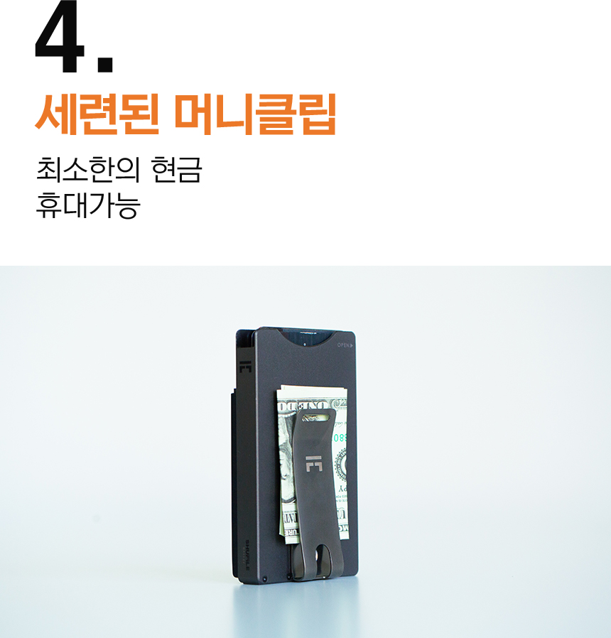세련된 머니 클립은 현금을 안전하게 보관하고 미니멀하게 수납할 수 있어 깔끔하게 정리할 수 있습니다.