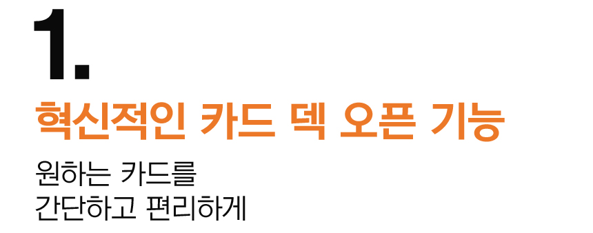 독특한 전용 카드 슬롯 디자인으로 원하는 카드를 빠르게 찾고,