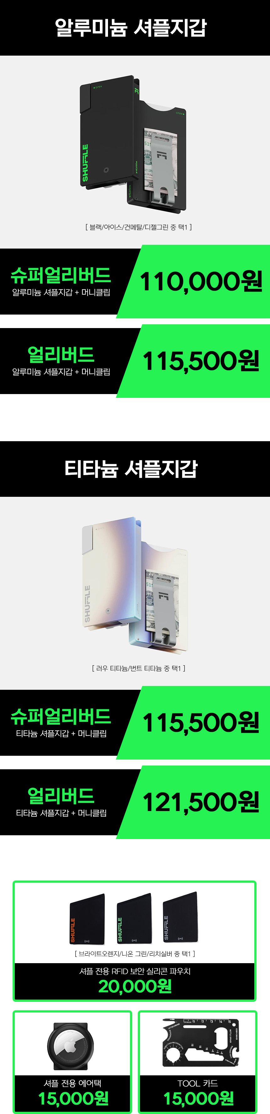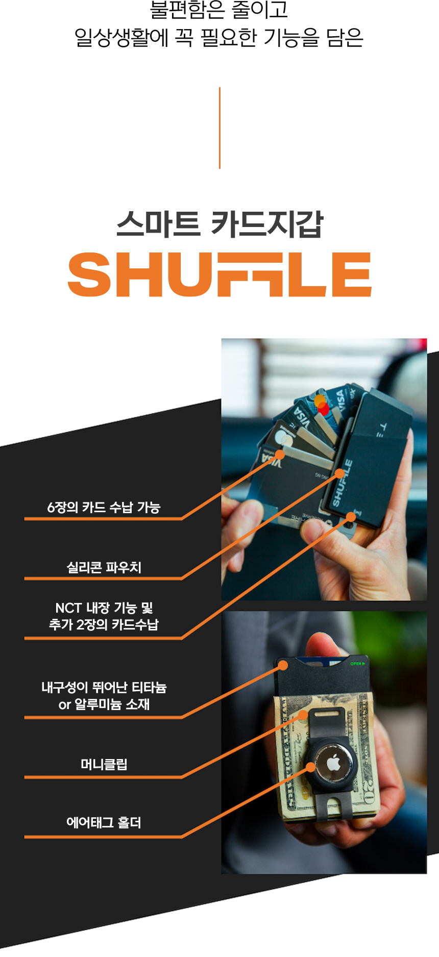 서포터분들로부터 예약구매 된 소중한 예약구매 금액은 Shuffle Wallet이 한국에 정식으로 통관되어 유통되기 위한 자금으로 쓰일 예정입니다.