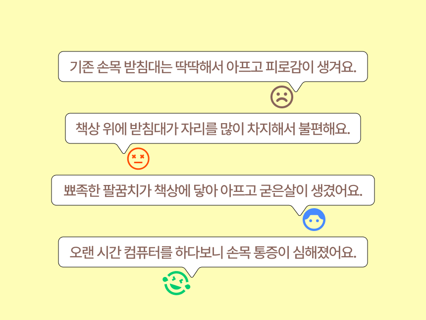 쿠션이 손목과 팔꿈치를 편안하게 받쳐주어