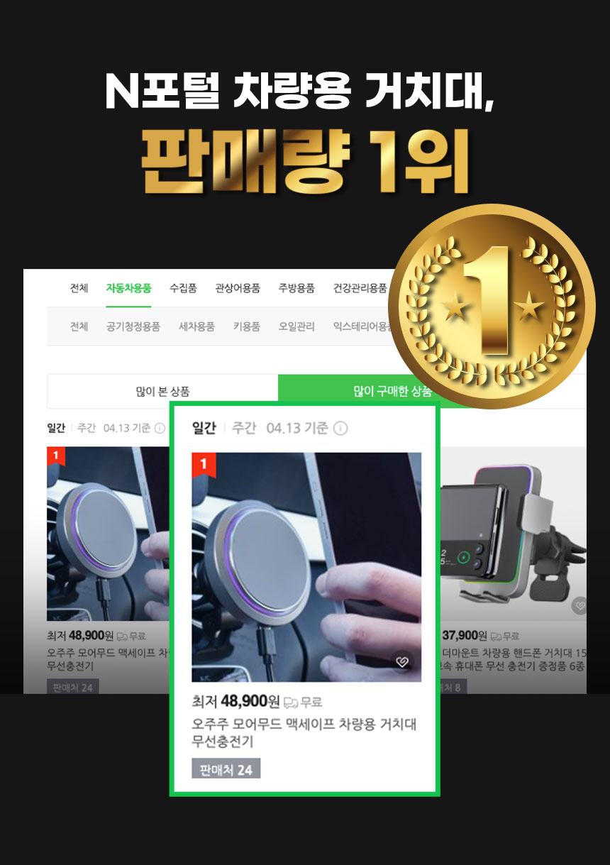 Qi2 모어무드 차량용 거치대는 KC 인증 진행중입니다.