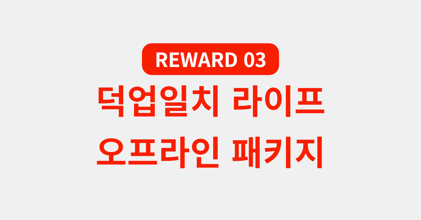 2. '덕업일치 라이프 오프라인 패키지'는 펀딩이 종료되는 시점부터 3개월 이내에 사용이 가능합니다. 상호협의 된 날짜와 장소에서 오프라인으로 진행됩니다. 더 자세한 안내사항은 개별적으로 안내드릴 예정입니다.