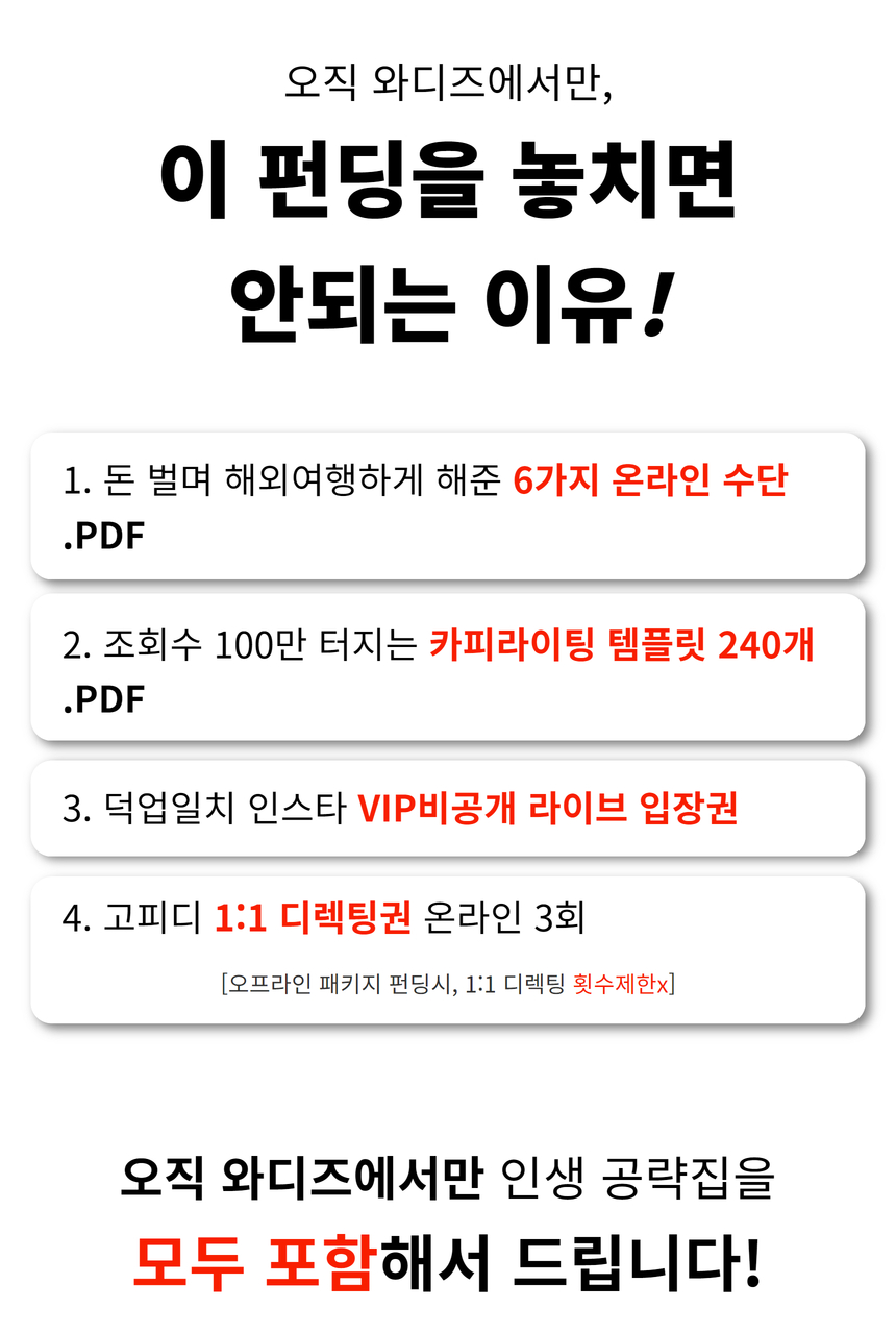 1. PDF 및 VOD는 와디즈에 등록된 이메일을 통해 발송됩니다.