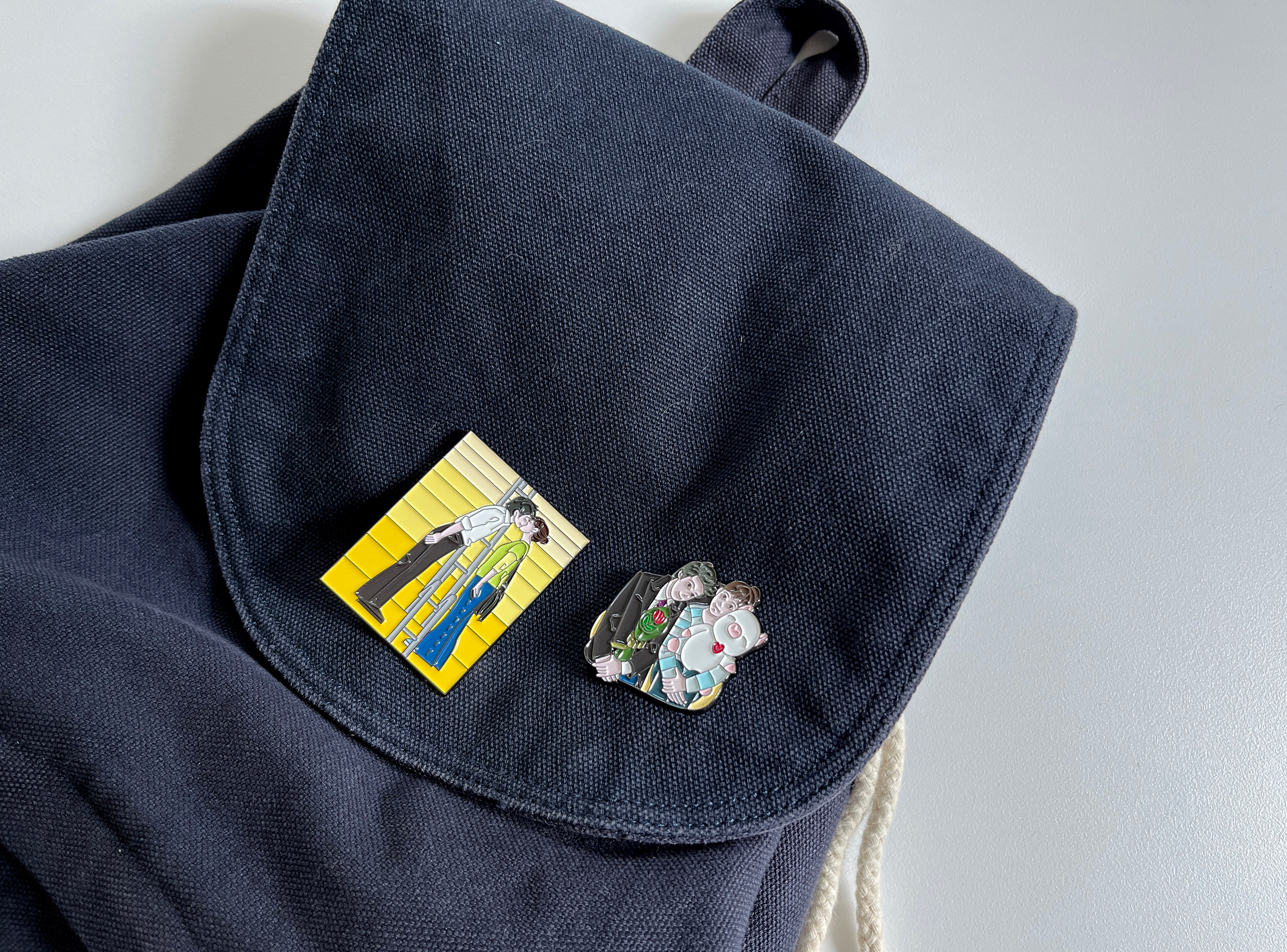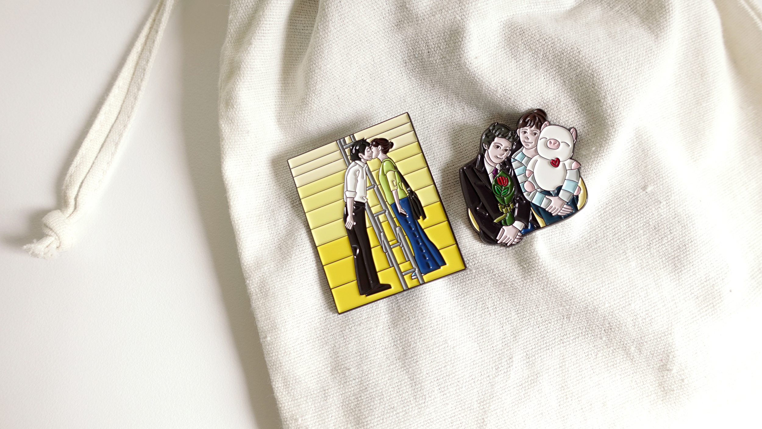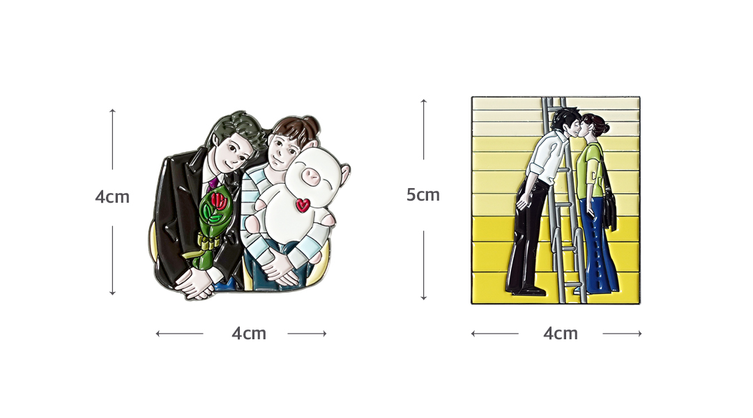 삼순이와 진헌이의 추억을 금속 핀 배지에 담았습니다.