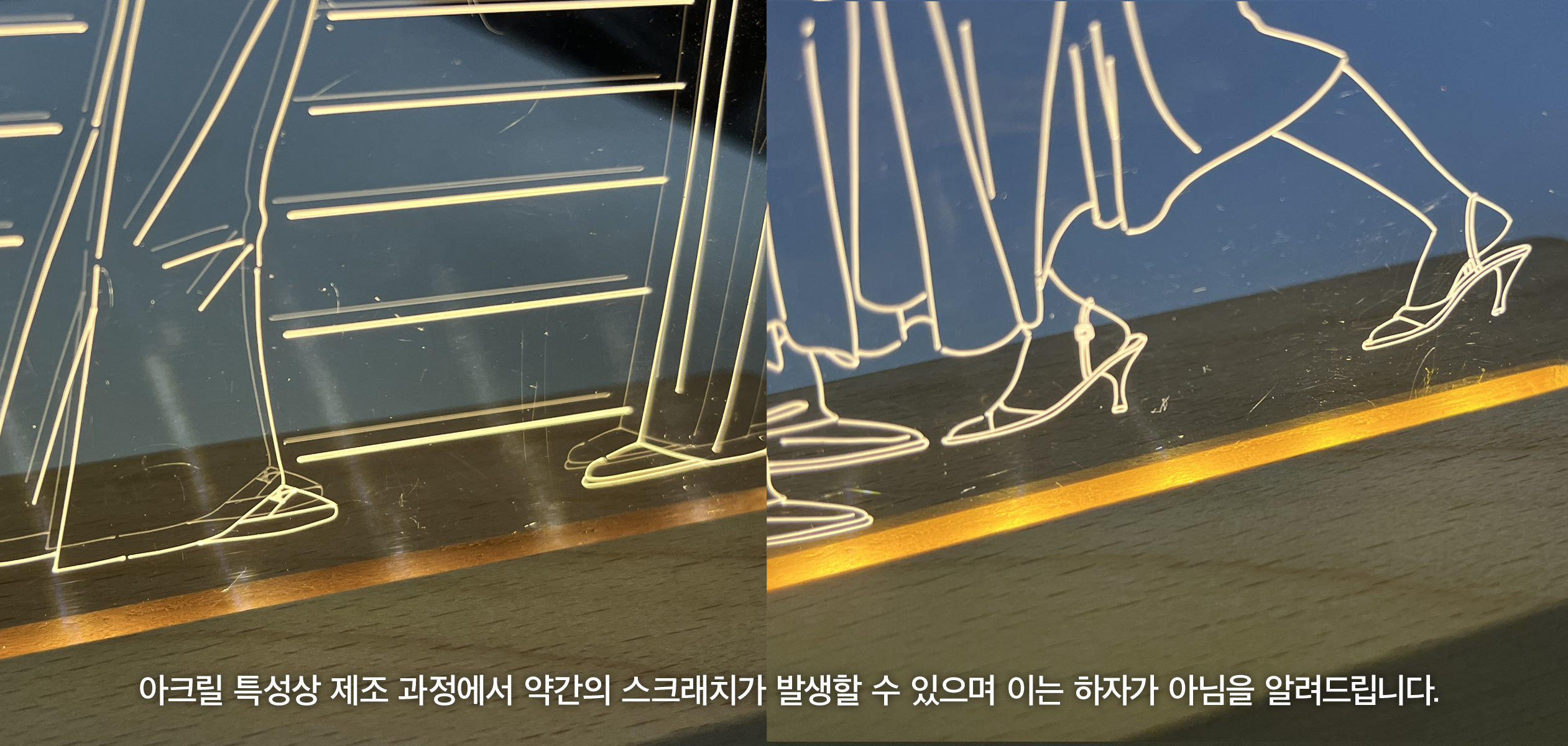 * 아크릴 제조 과정에서 약간의 스크래치가 발생할 수 있으며 이는 하자가 아님을 알려드립니다