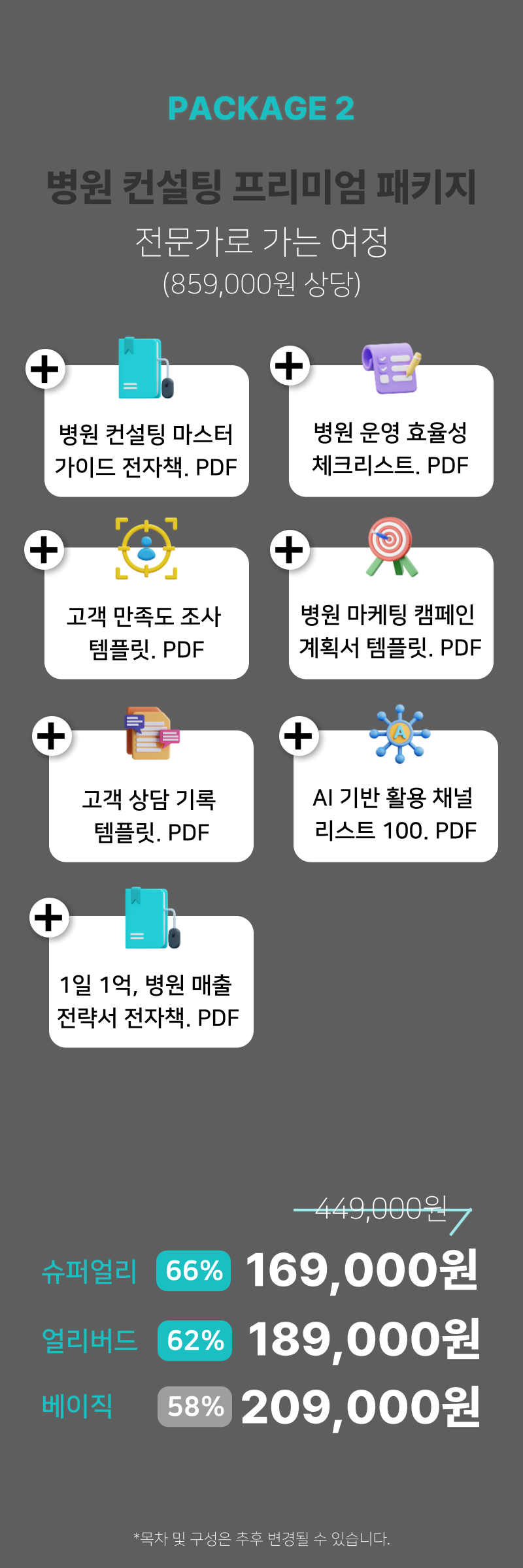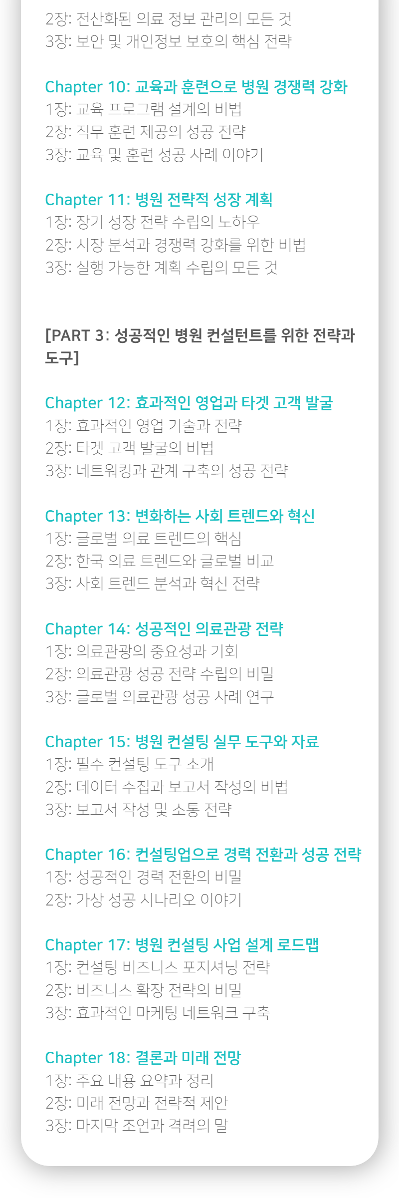 A. 네, 가능합니다! 이 리워드는 의료 분야에 대한 배경 지식이 없어도 쉽게 이해할 수 있도록 구성되어 있습니다. 기본적인 병원 컨설팅 개념부터 차근차근 설명하며, 실무에 바로 적용할 수 있는 방법까지 단계별로 안내합니다. 실제 사례를 포함하여, 병원 업무에 익숙하지 않은 분들도 쉽게 따라 할 수 있습니다.